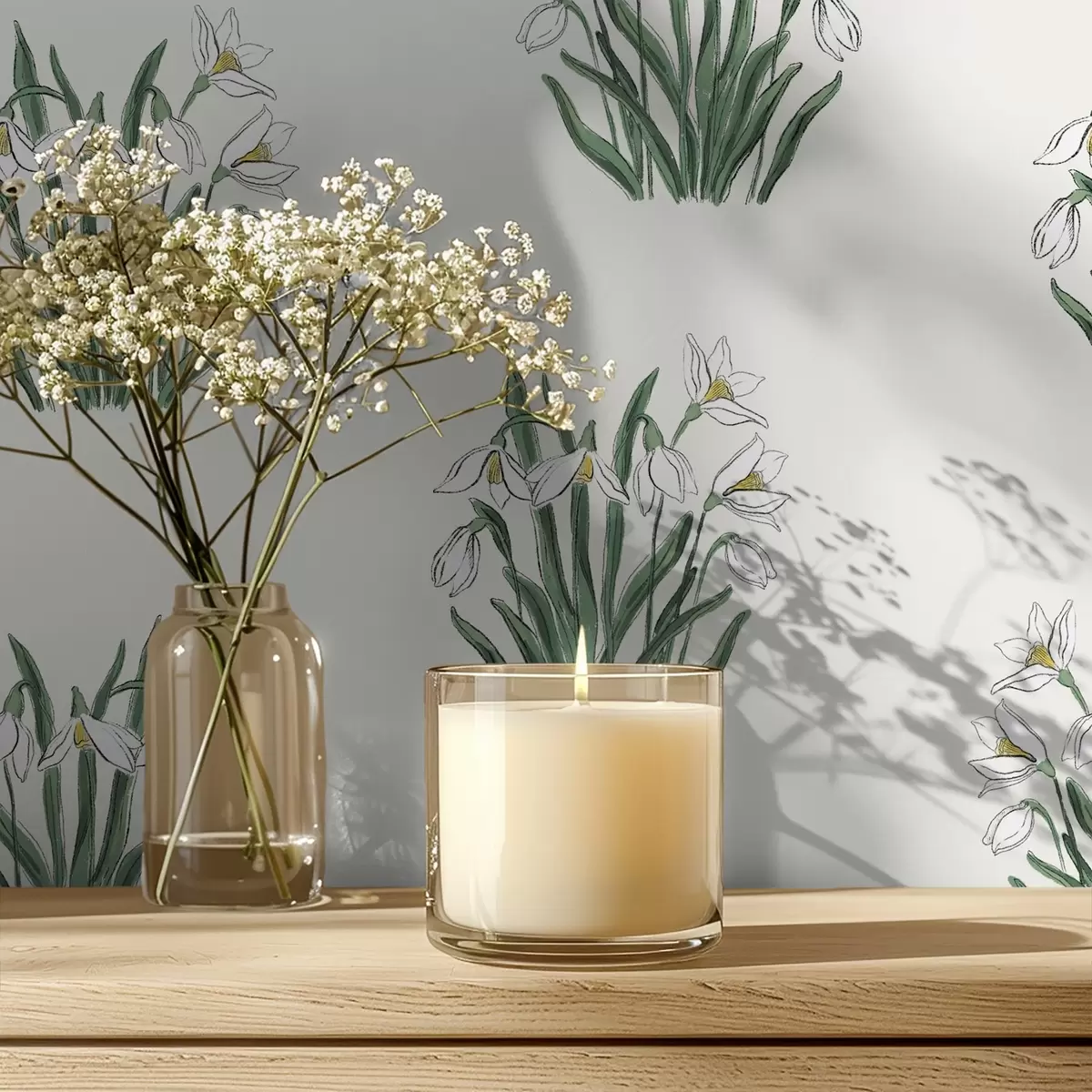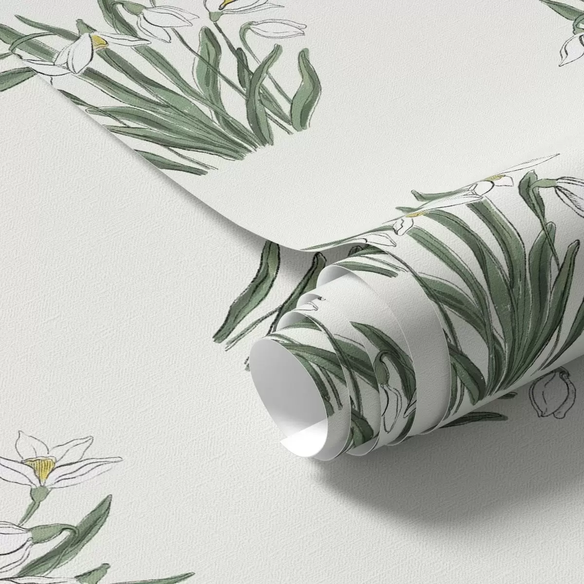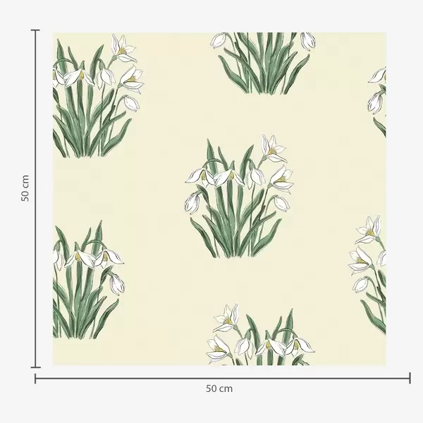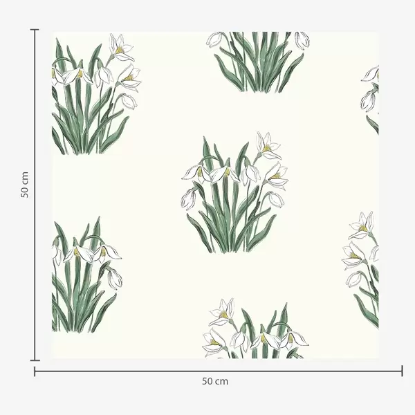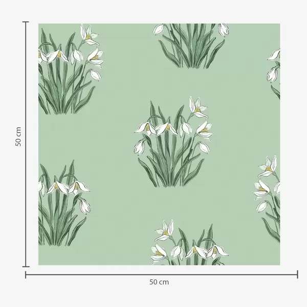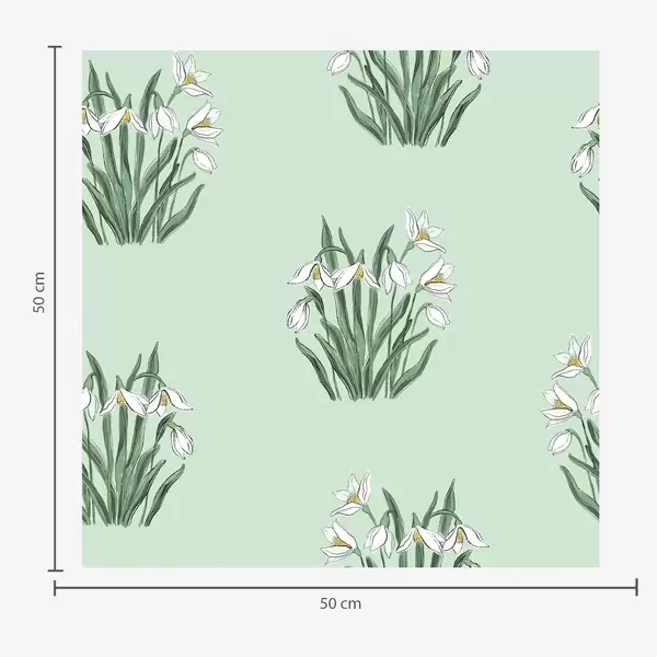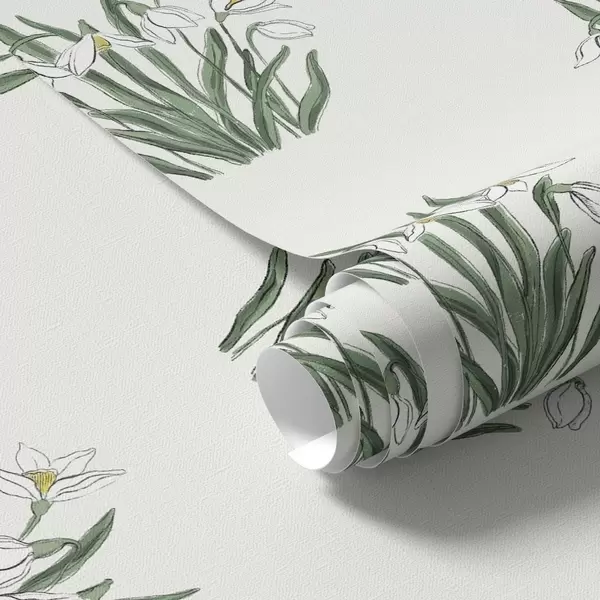 Tapetti Lumikellot vihreillä lehdillä vaaleanharmaalla taustalla Nr. a00651v1