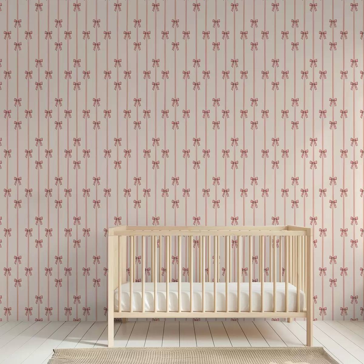 Tapetti Pystysuuntaiset nauhat ruseteilla, norsunluunvärinen tausta Nr. a00653