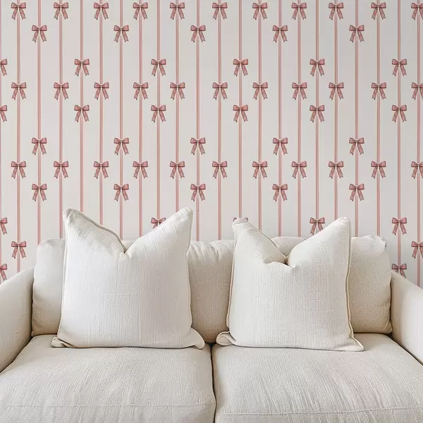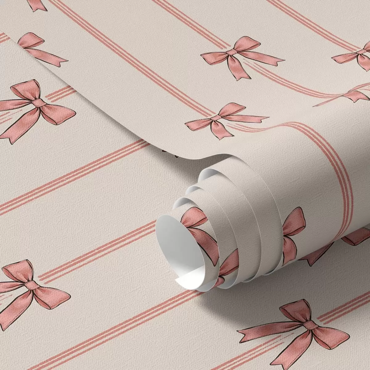 Tapetti Pystysuuntaiset nauhat ruseteilla, lämmin beige Nr. a00653v1