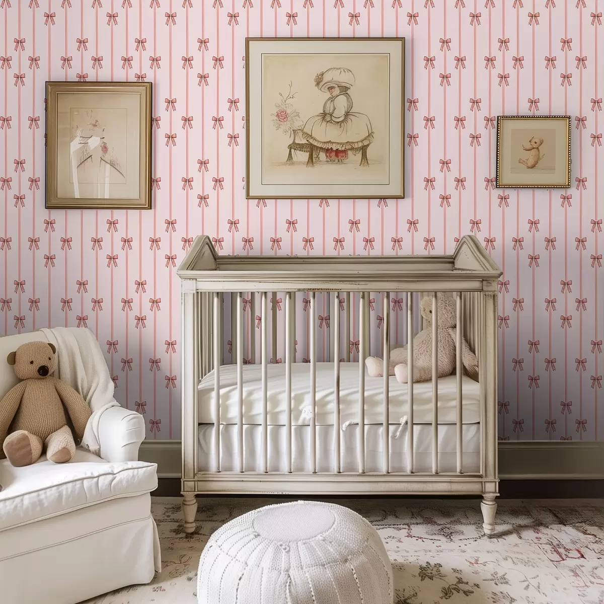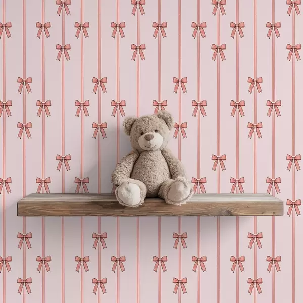 Tapetti Pystysuuntaiset nauhat ruseteilla, vaaleanpunainen tausta Nr. a00653v2