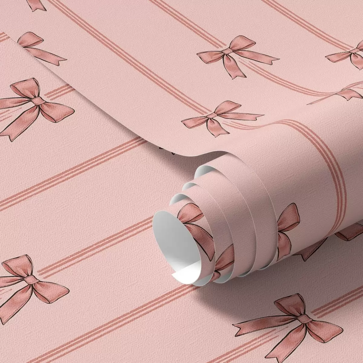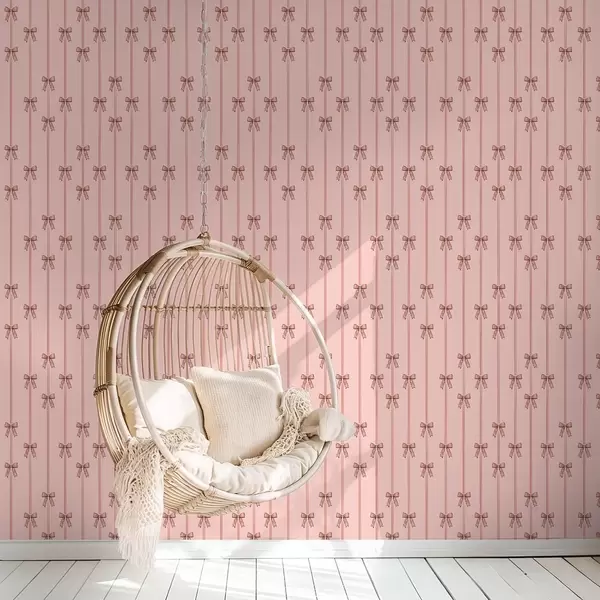 Tapetti Pystysuorat nauhat ruseteilla, korallinpunainen tausta Nr. a00653v3