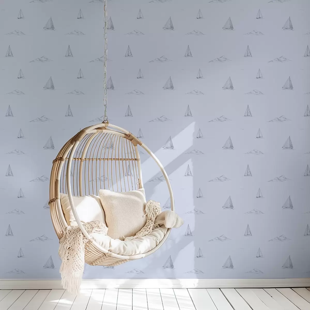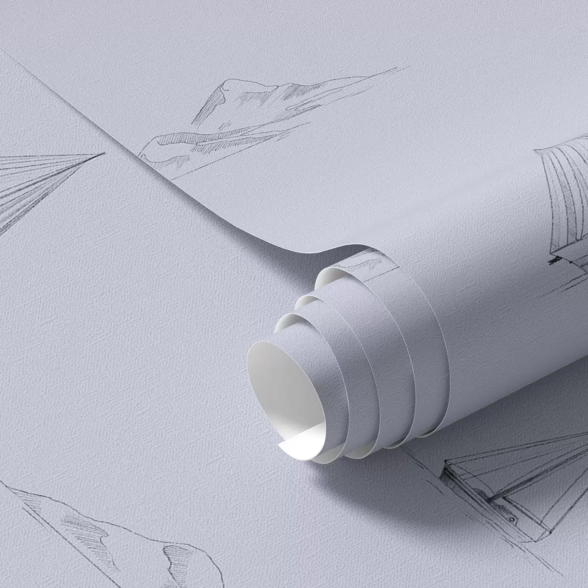 Tapetti Piirrä purjeveneitä ja saaria siniselle taustalle Nr. a00654v3