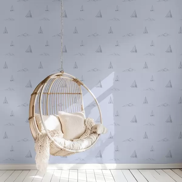 Tapetti Piirrä purjeveneitä ja saaria siniselle taustalle Nr. a00654v3