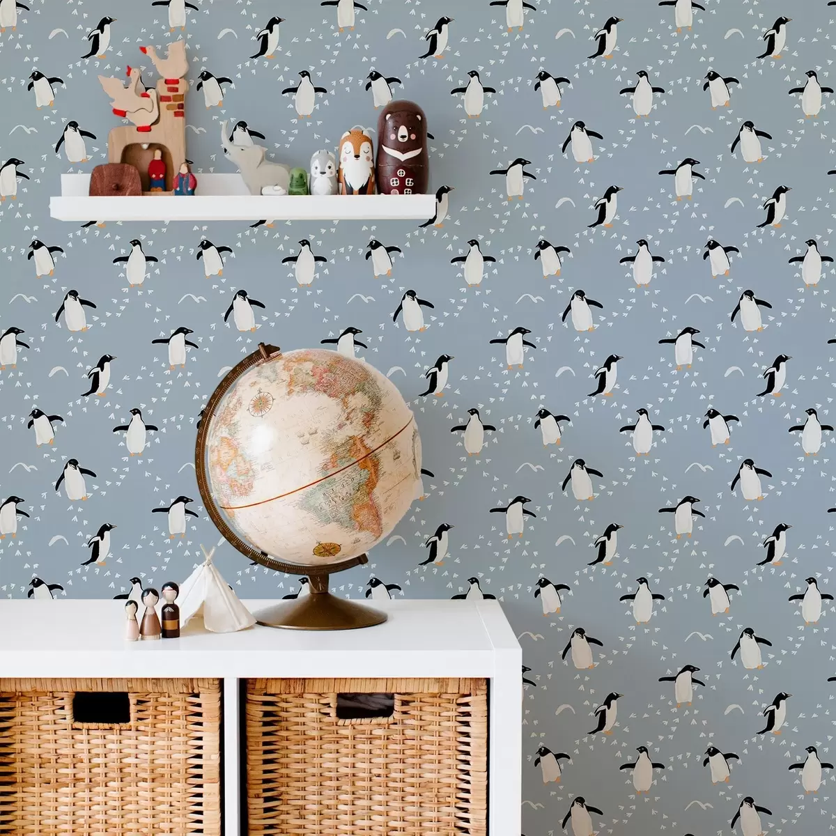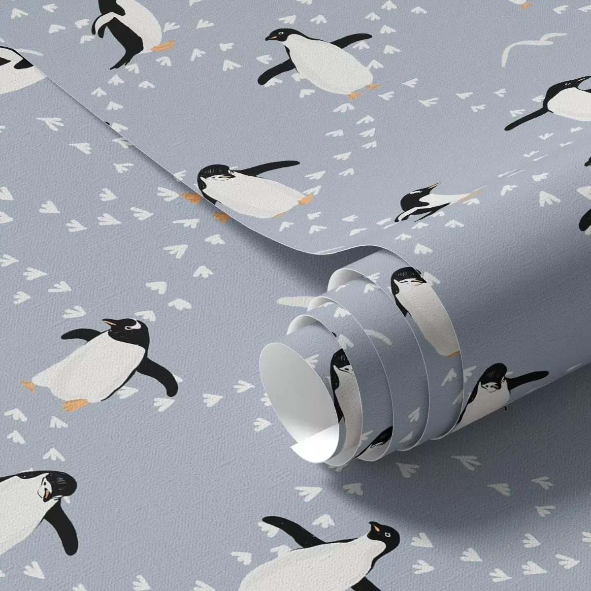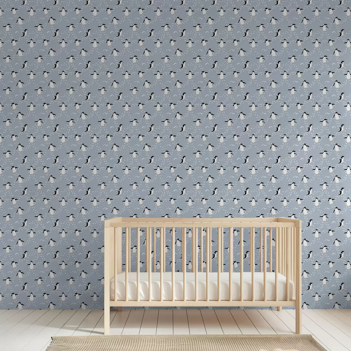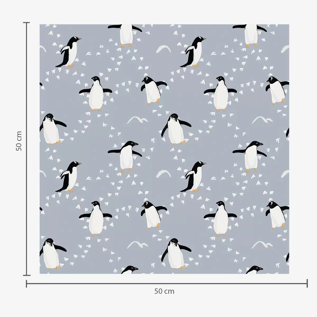 Tapetti Pingviinit harmaansinisellä pohjalla, jalanjäljet Nr. a00655
