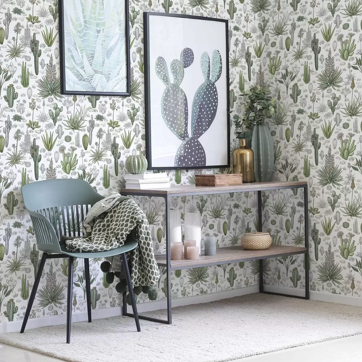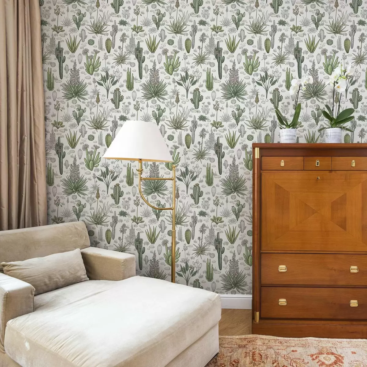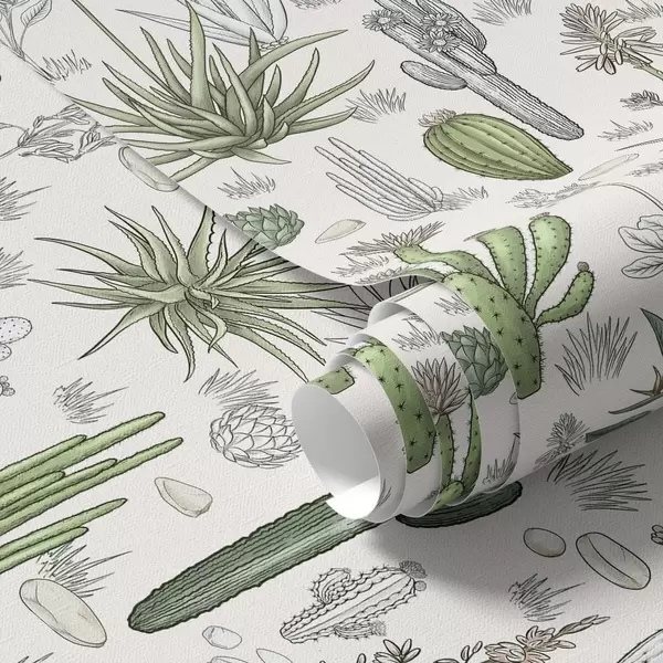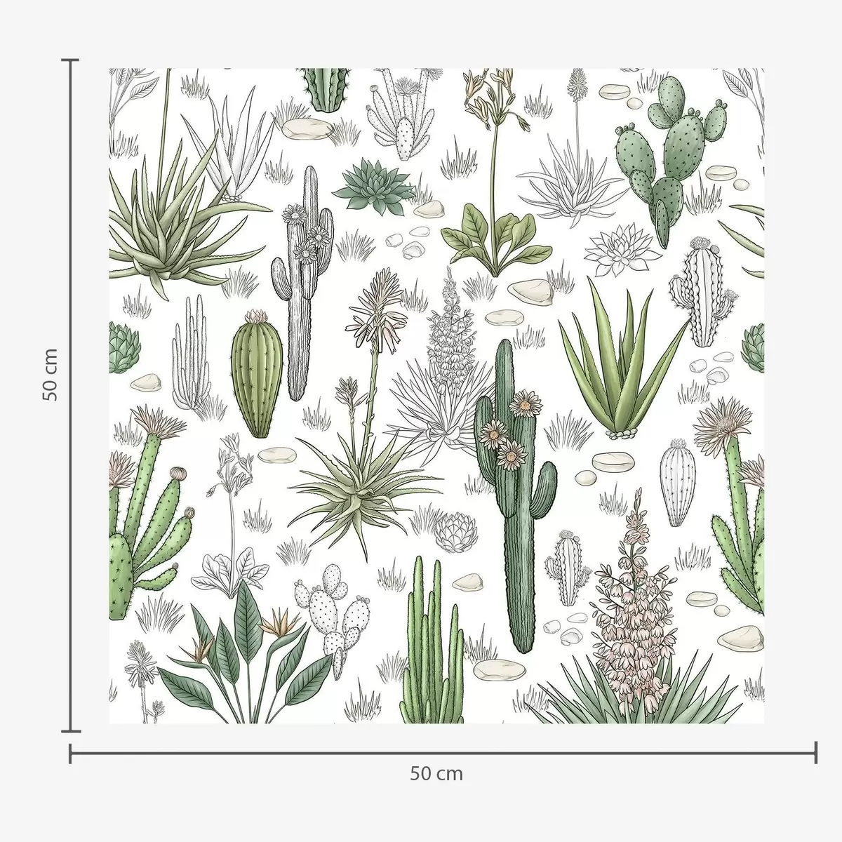 Tapetti Kaktukset ja mehikasvit vaalealla taustalla, lineaarinen tyyli Nr. a00666v1