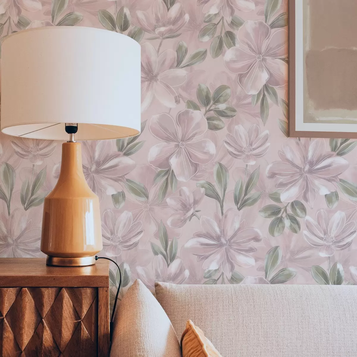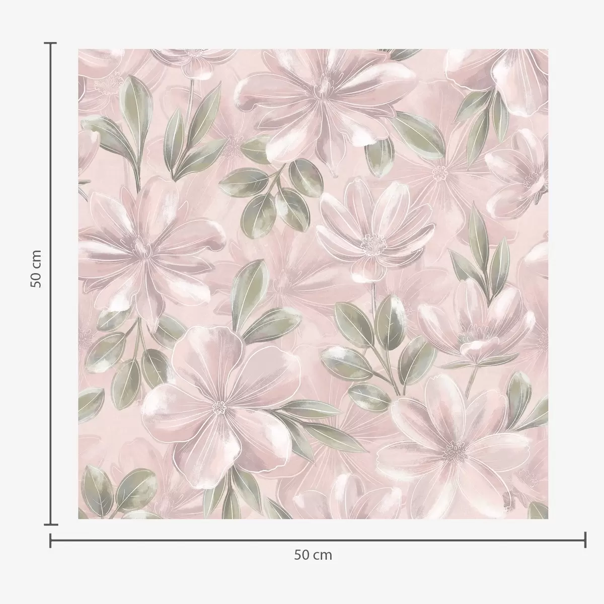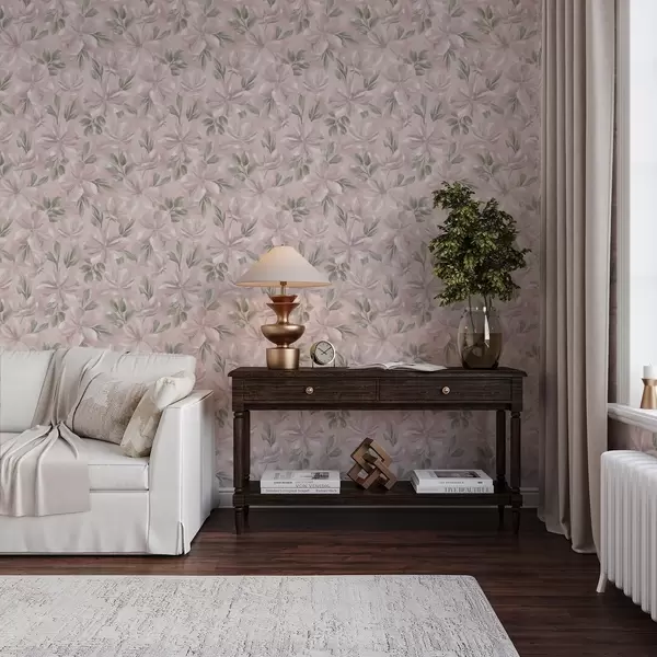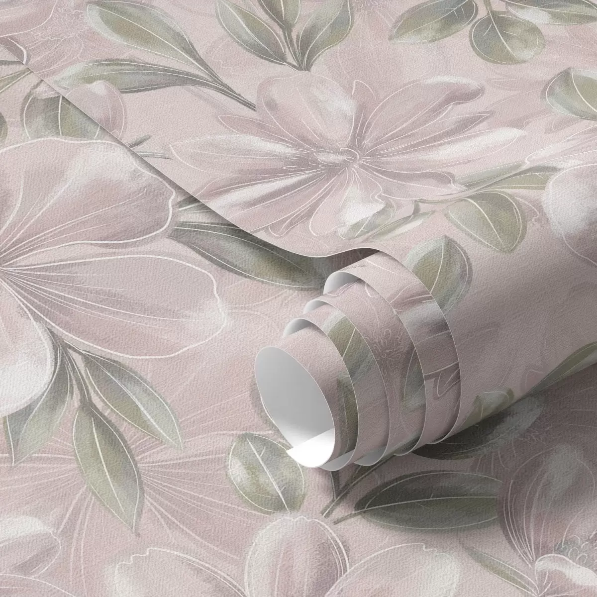Tapetti Vaaleanpunaiset kukat ja herkät lehdet pehmeällä taustalla Nr. a00675