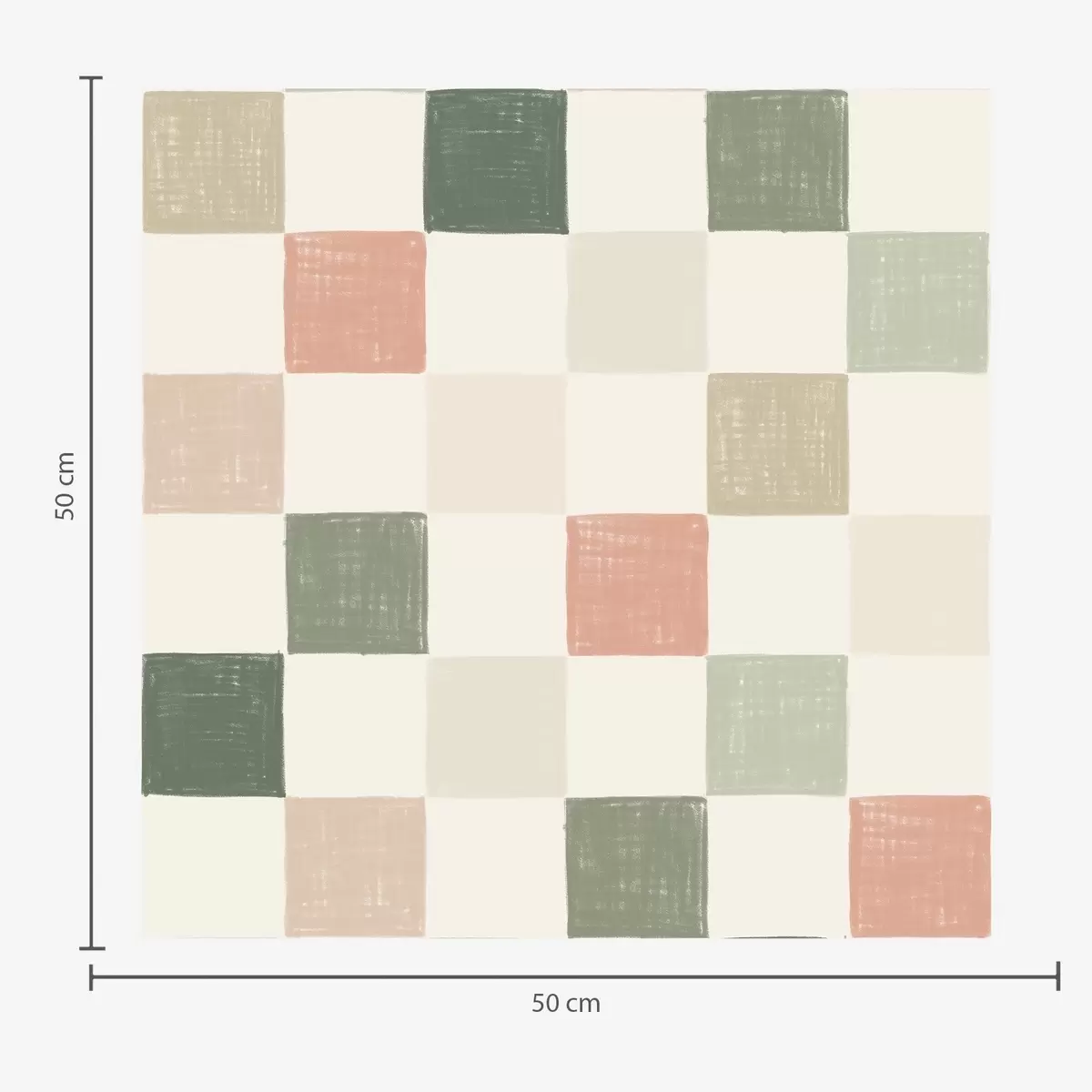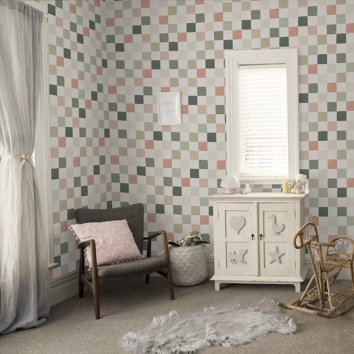 Tapetti Pehmeä ruudullinen pastellivihreä, vaaleanpunainen ja beige Nr. a00676