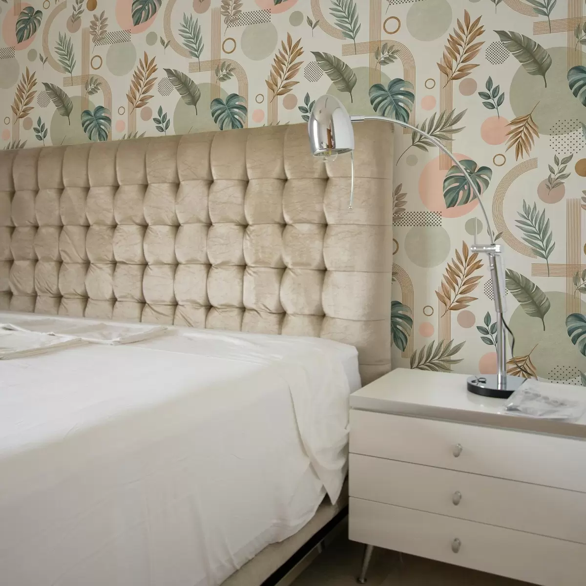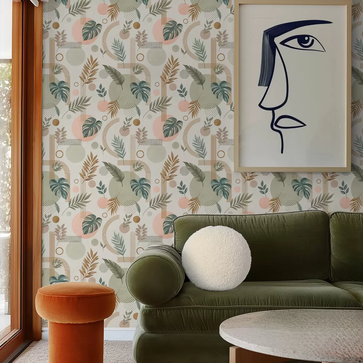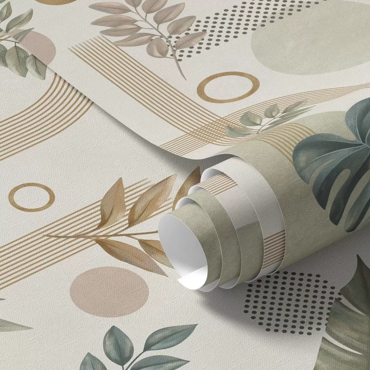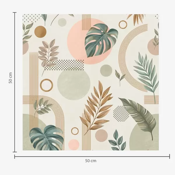 Tapetti Lehdet ja geometriset muodot rauhallisissa lämpimissä sävyissä Nr. a00677