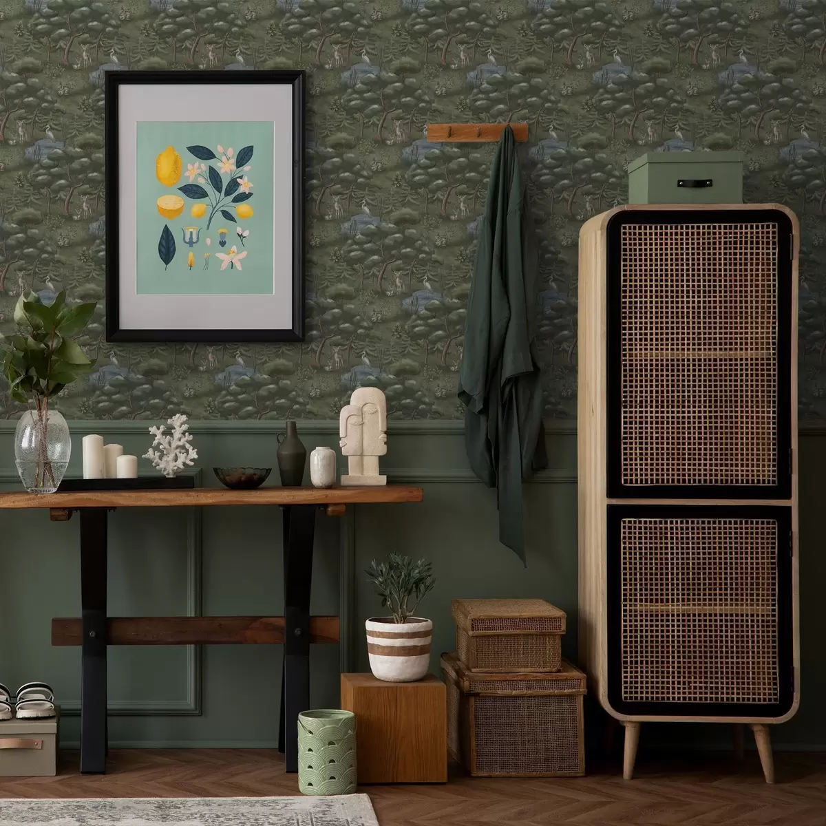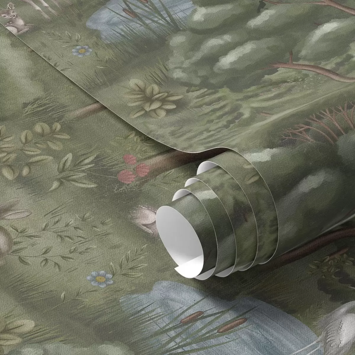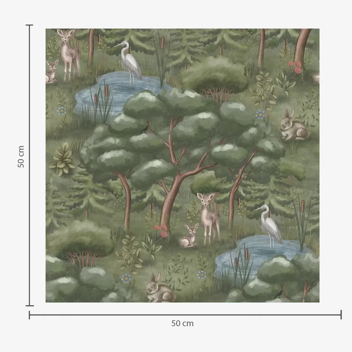 Tapetti Metsän aukea, jossa on kauriita, jäniksiä ja haikaroita Nr. a00680