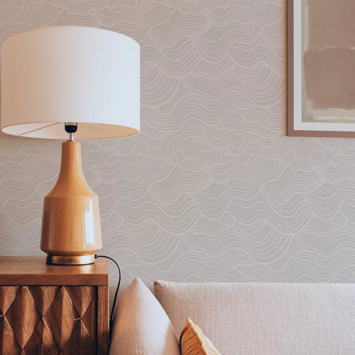 Tapetti Sävy sävyyn aaltoilevat viivat lämpimällä beigellä Nr. a00681v1