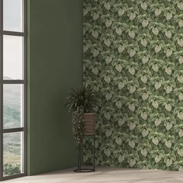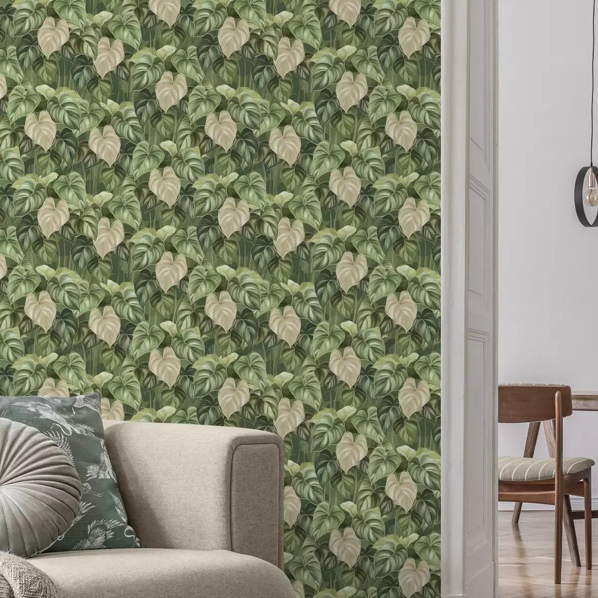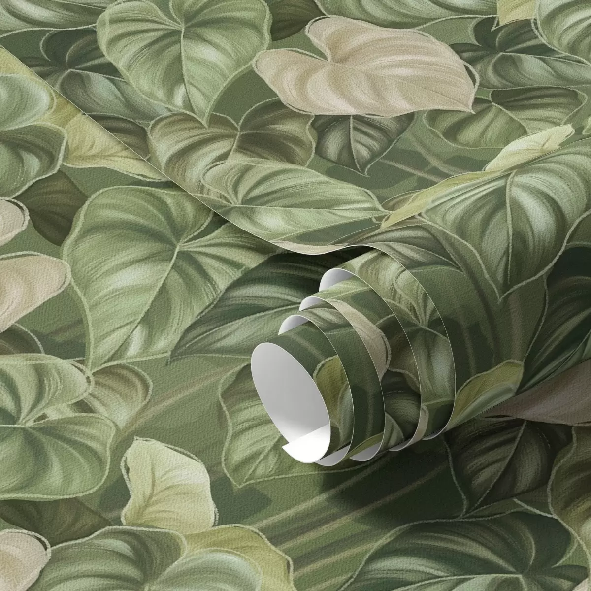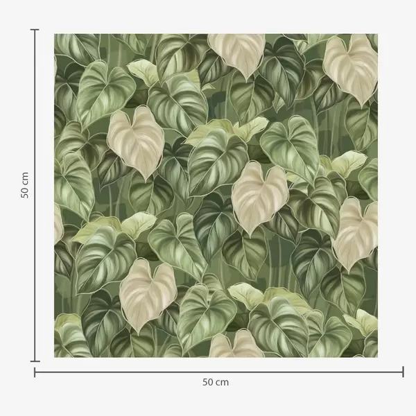 Tapetti Rehevät filodendronin lehdet vihreän ja norsunluun sävyissä Nr. a00695
