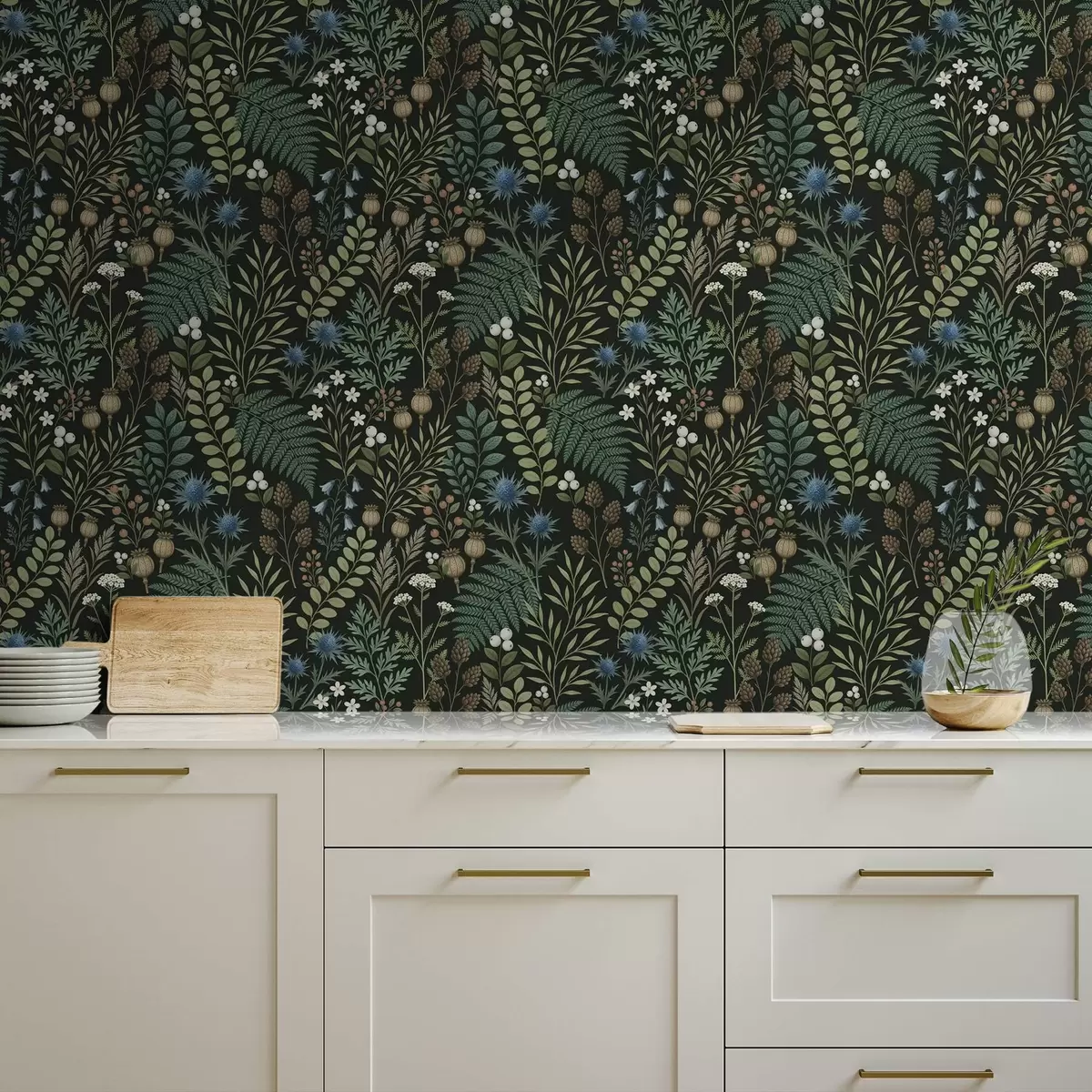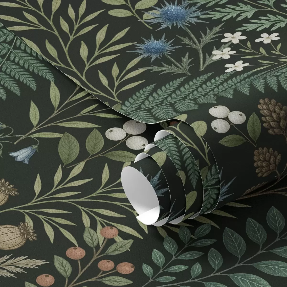 Tapetti Kentän ruoho, marjat ja siemenet tummalla taustalla Nr. a00706
