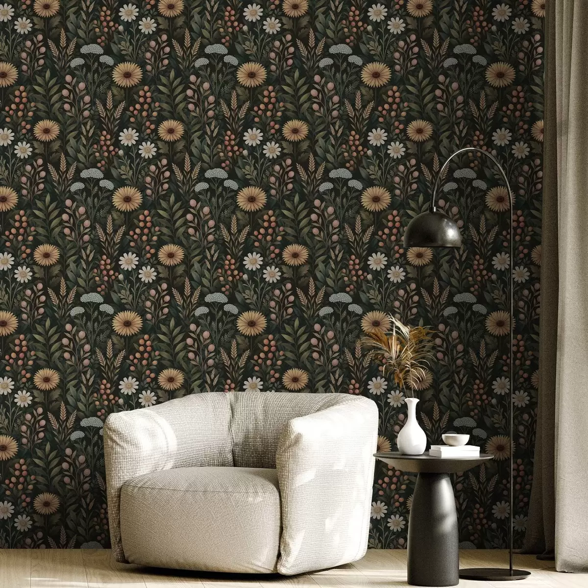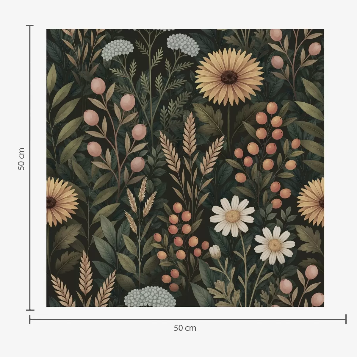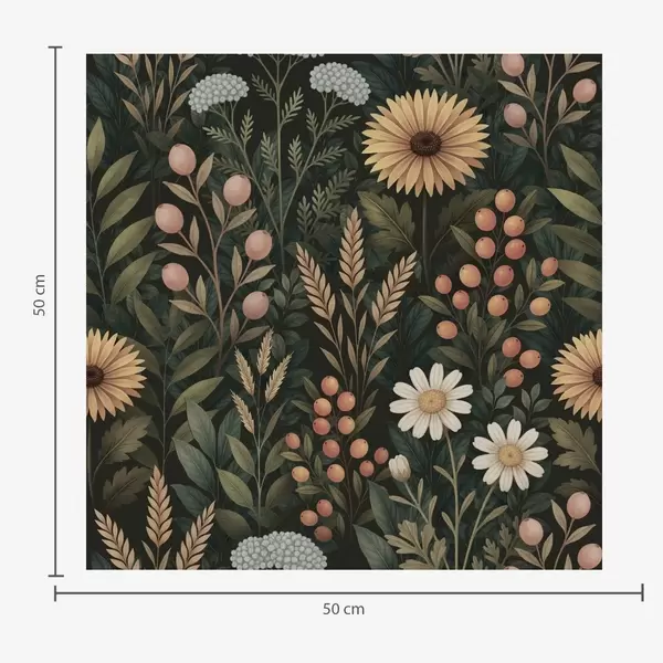 Tapetti Kukkaset ja marjat tummalla taustalla, luonnollinen koriste Nr. a00707