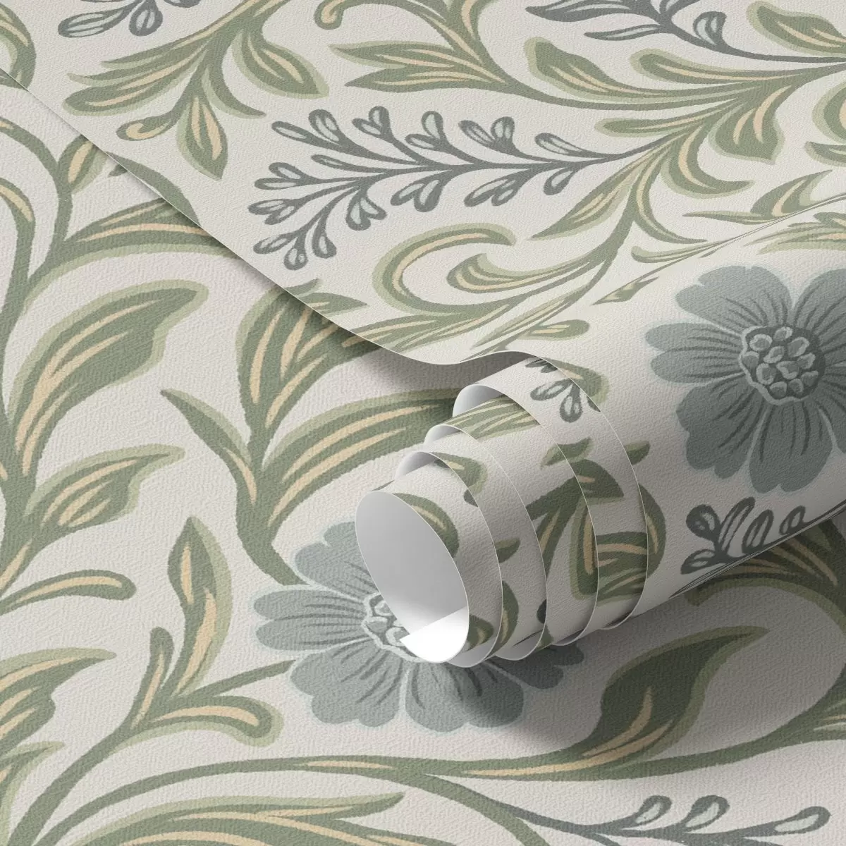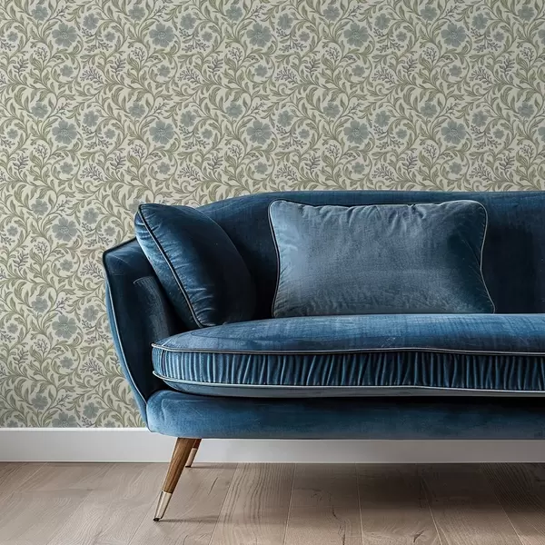 Tapetti Salviaharmaa kukkakoriste vaalealla taustalla Nr. a00712
