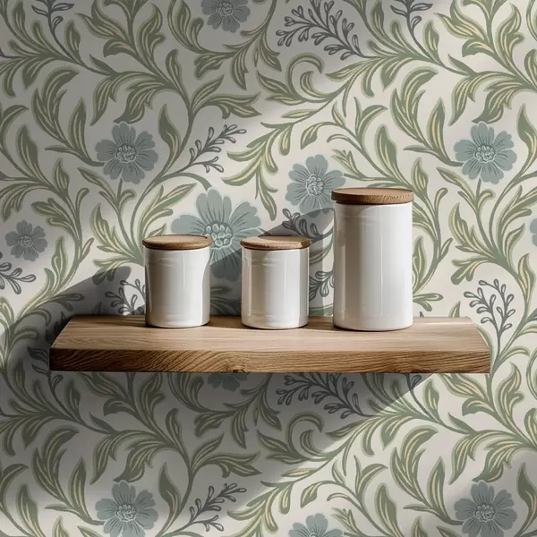 Tapetti Salviaharmaa kukkakoriste vaalealla taustalla Nr. a00712