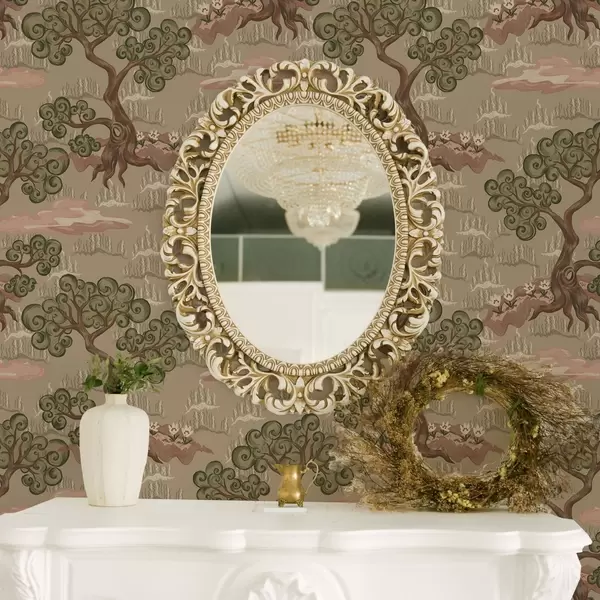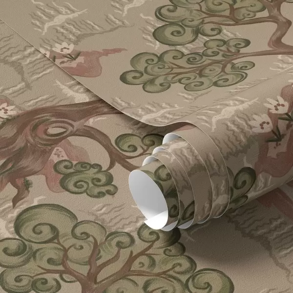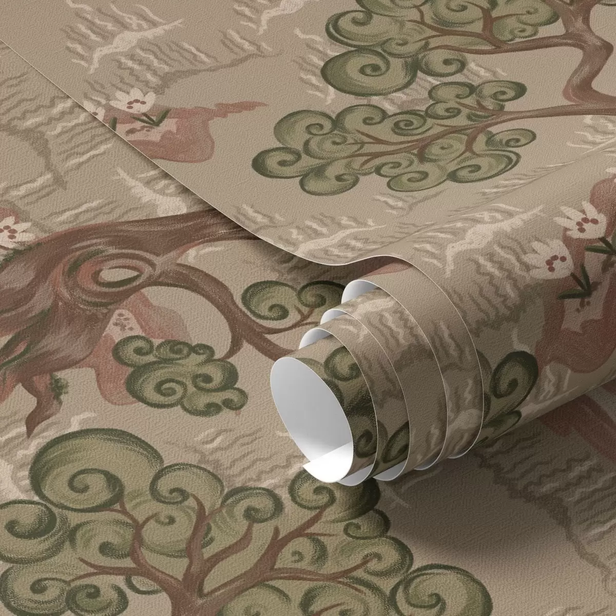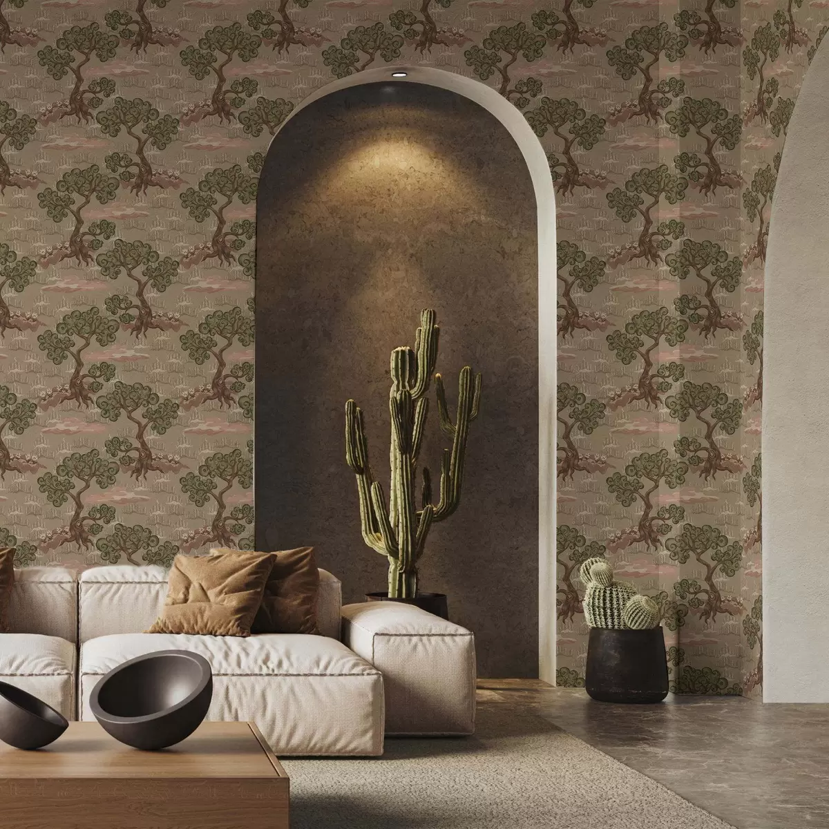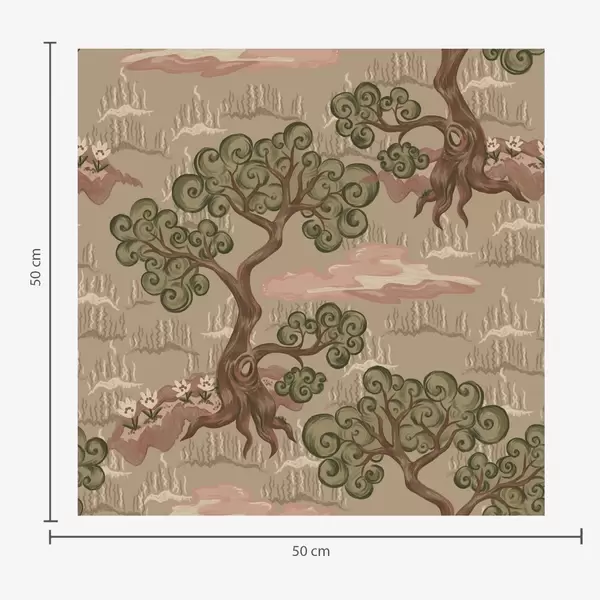 Tapetti Itäinen maisema, jossa on omituisia puita hiekkaisella taustalla Nr. a00715