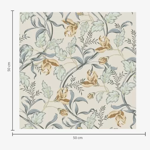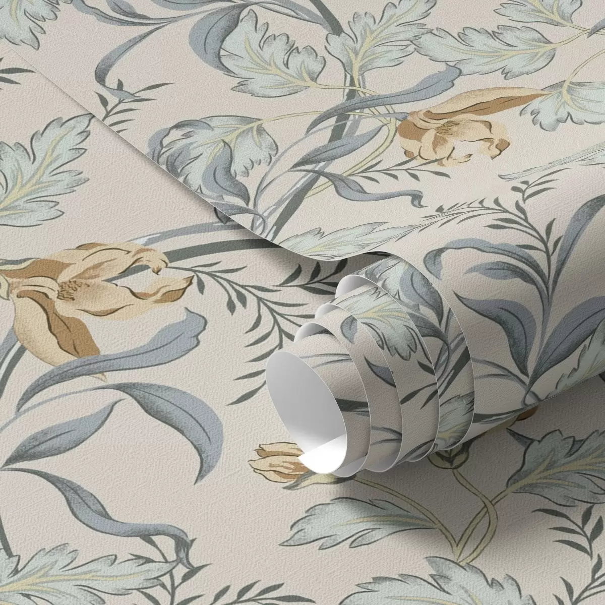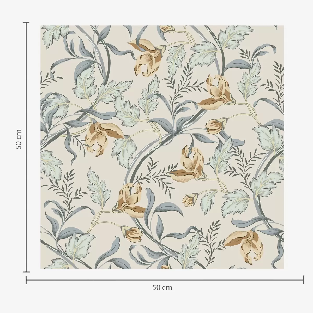 Tapetti Vintage-kukat sinisellä lehdellä kermanvärisellä taustalla Nr. a00717