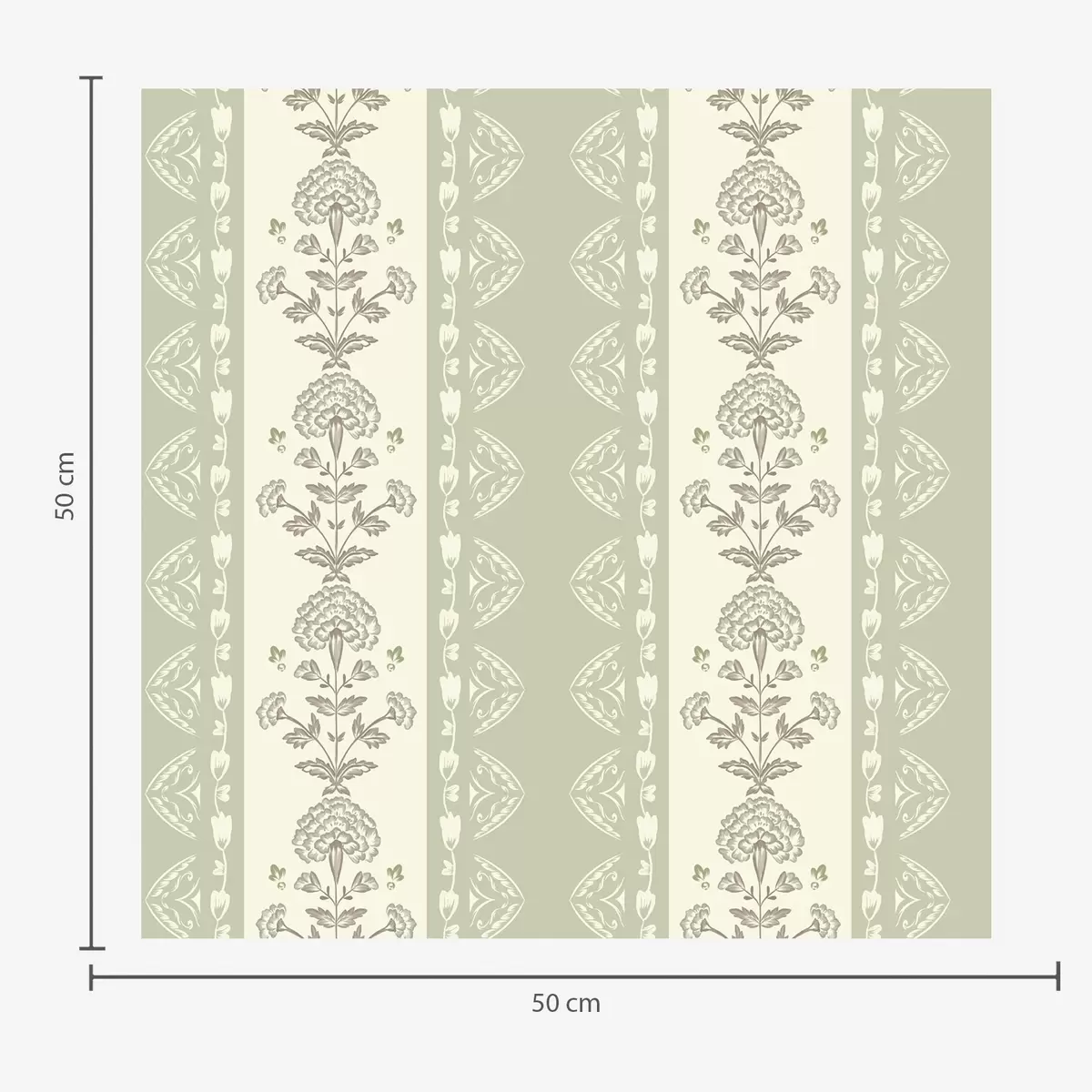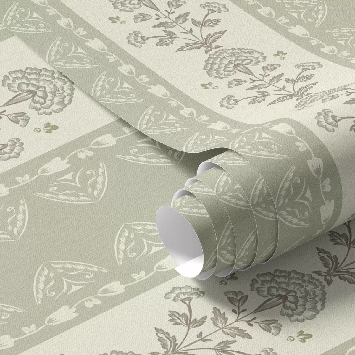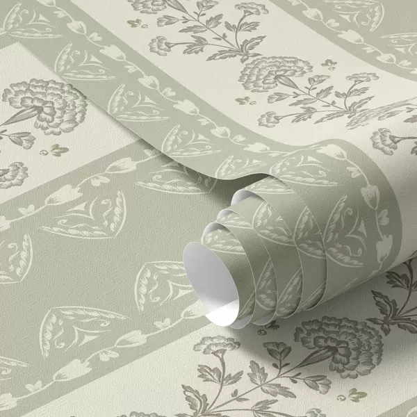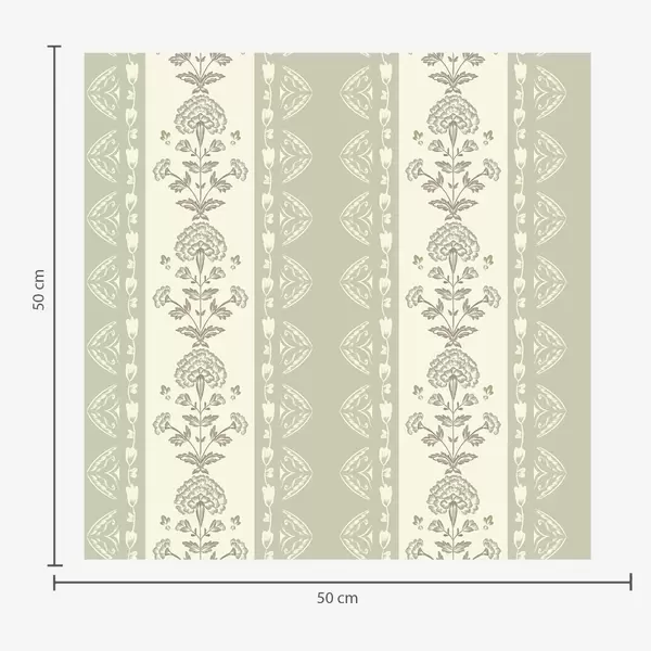 Tapetti Raidallinen koriste, jossa on salvia-sävyisiä kukkakuvioisia pylväitä Nr. a00719