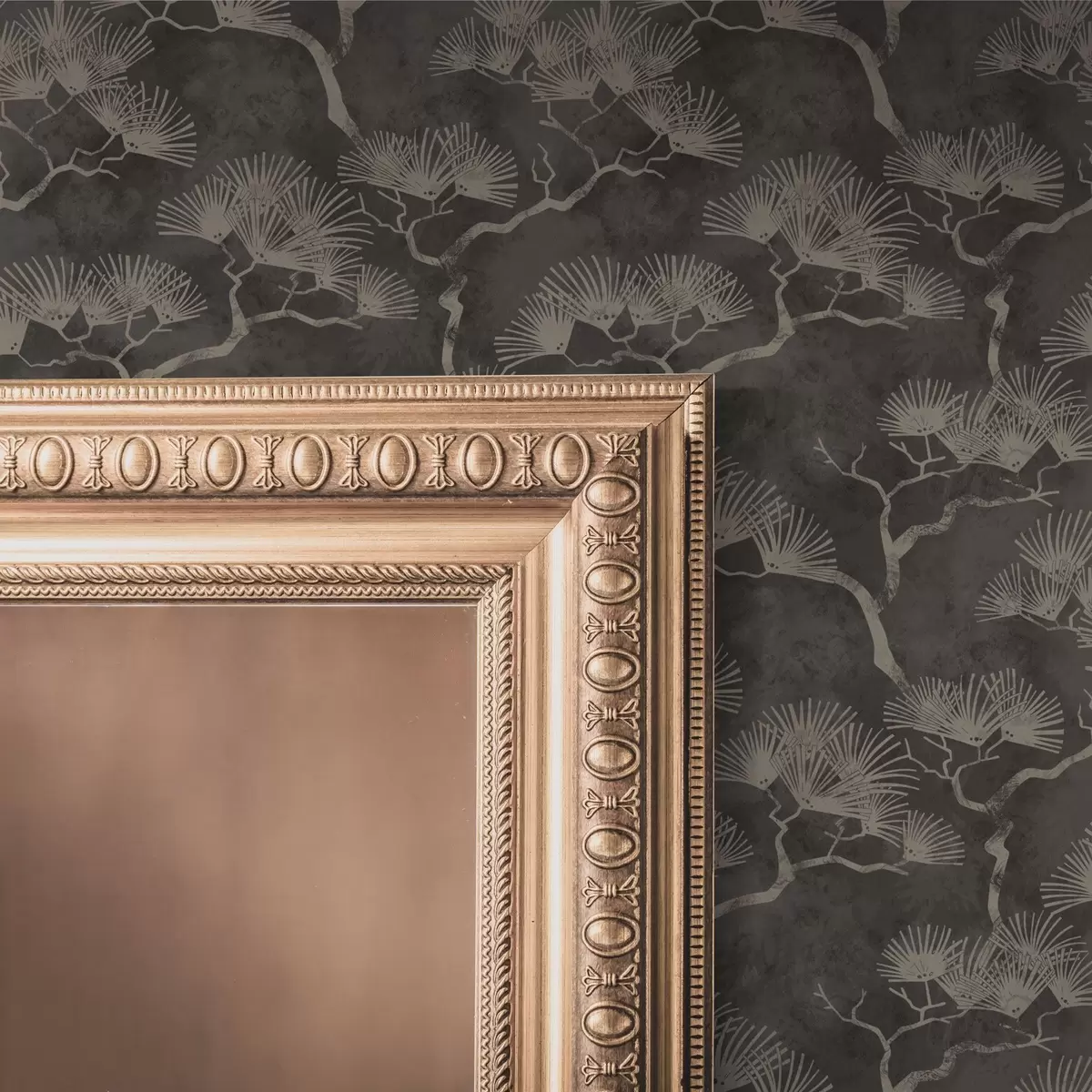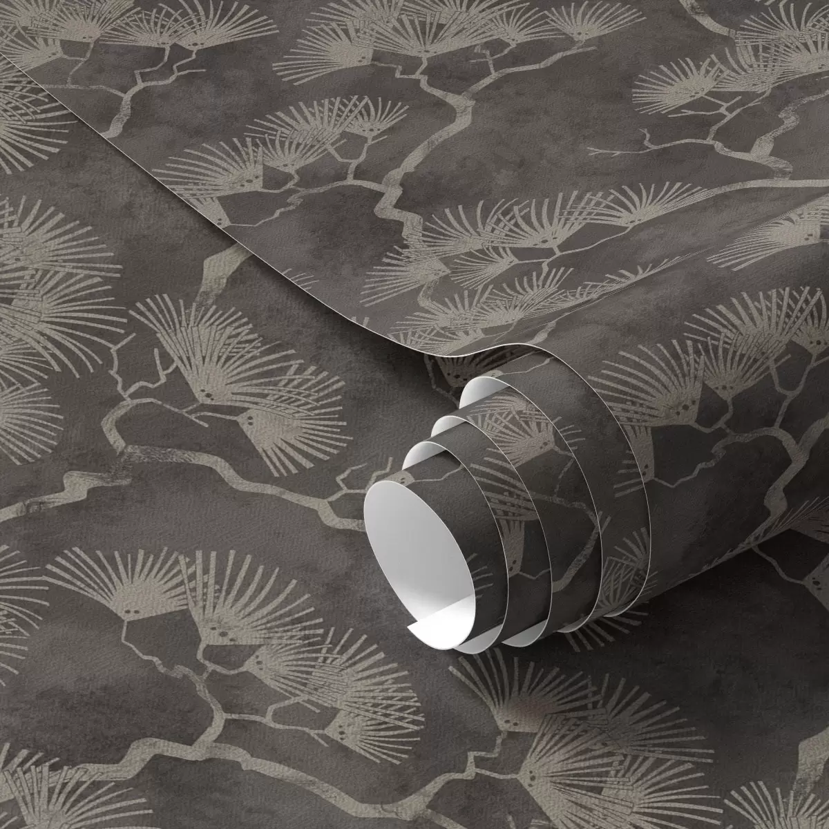 Tapetti Mäntyjen siluetit tummalla taustalla, sumuinen tekstuuri Nr. a00742