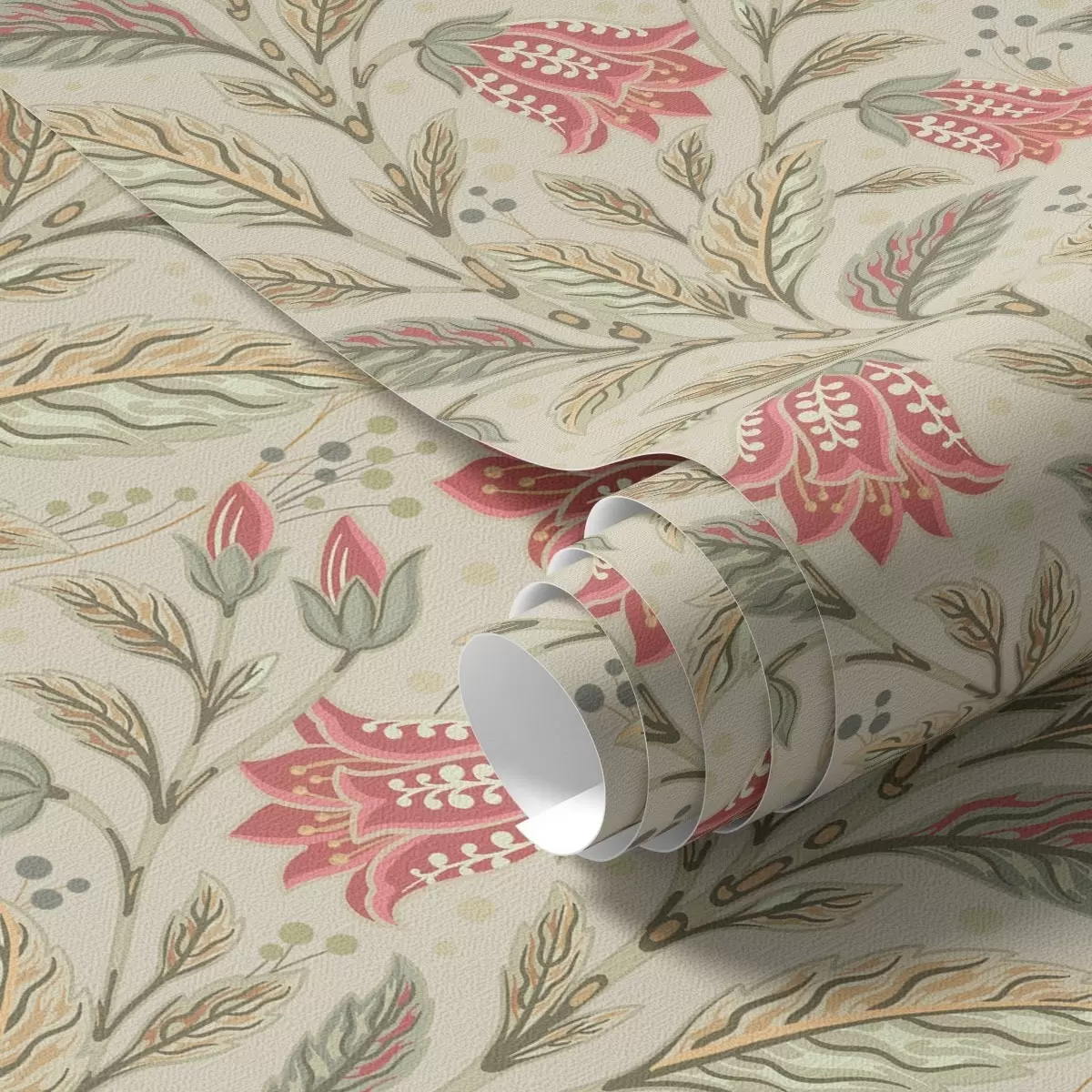 Tapetti Pienet kukat, joissa on kellomaisia, vaaleanpunaisen ja vihreän sävyisiä kukkia Nr. a00760