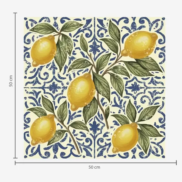 Tapetti Sitruunan oksat sinisellä koristeellisella taustalla Nr. a00763