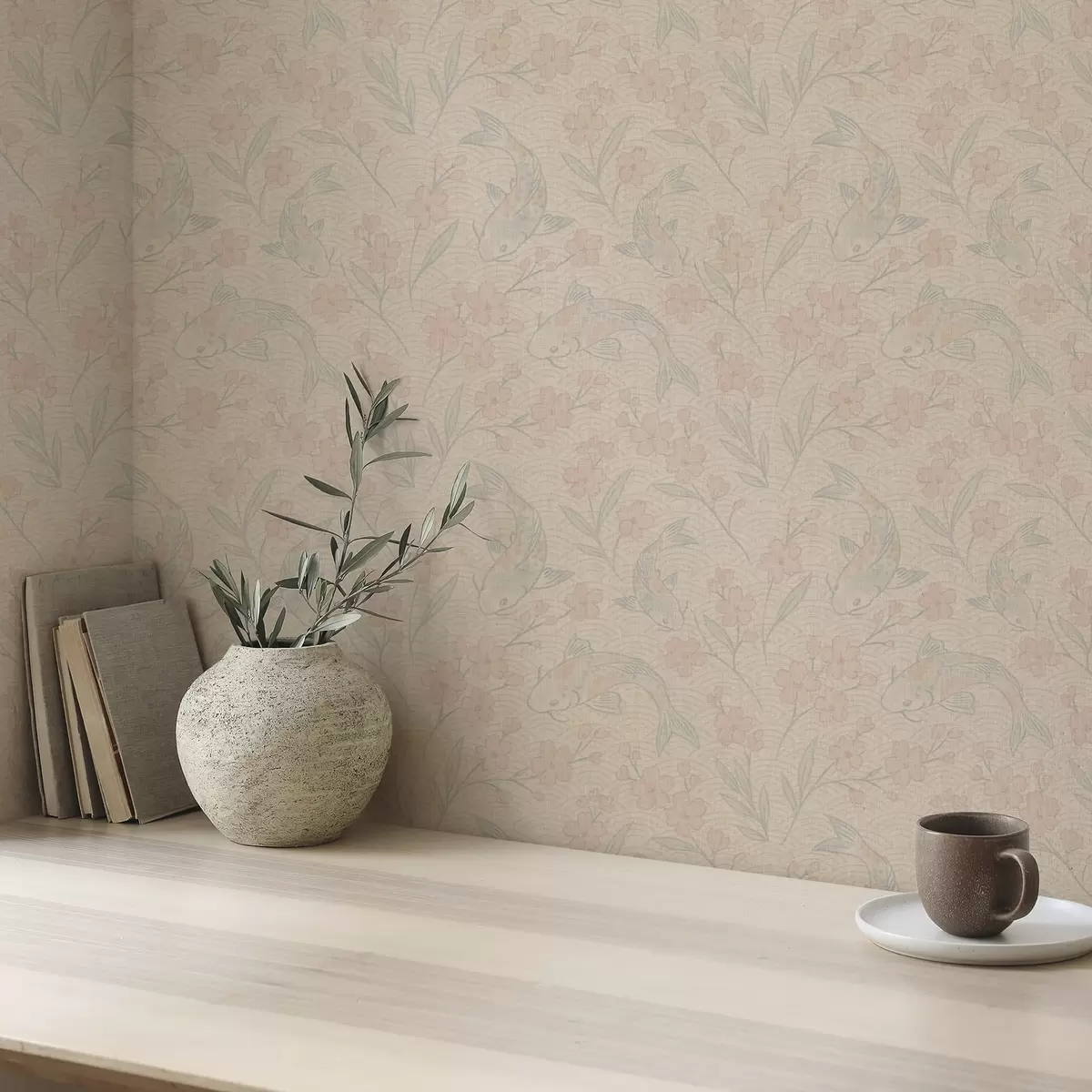 Tapetti Karpit pehmeän beige-vaaleanpunaisissa sävyissä kukkien keskellä Nr. a00766