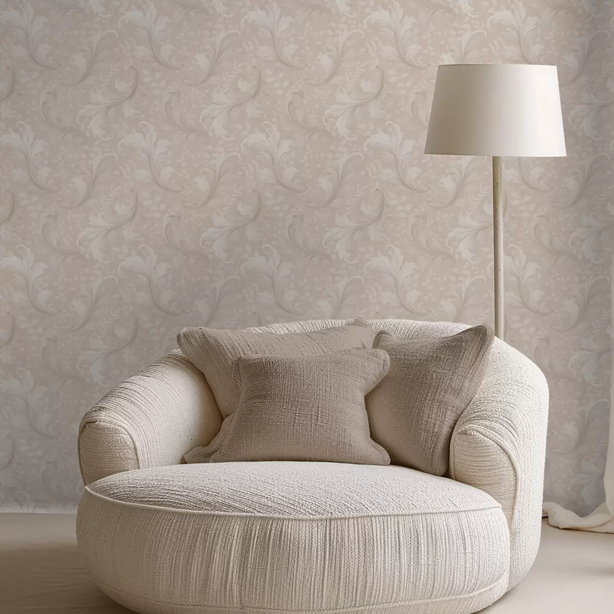 Tapetti Akanttuskoristeet lämpimällä beige-taustalla Nr. a00772