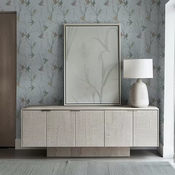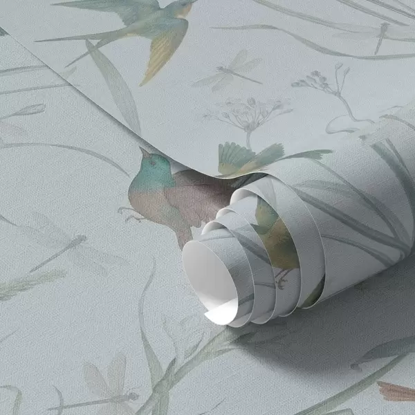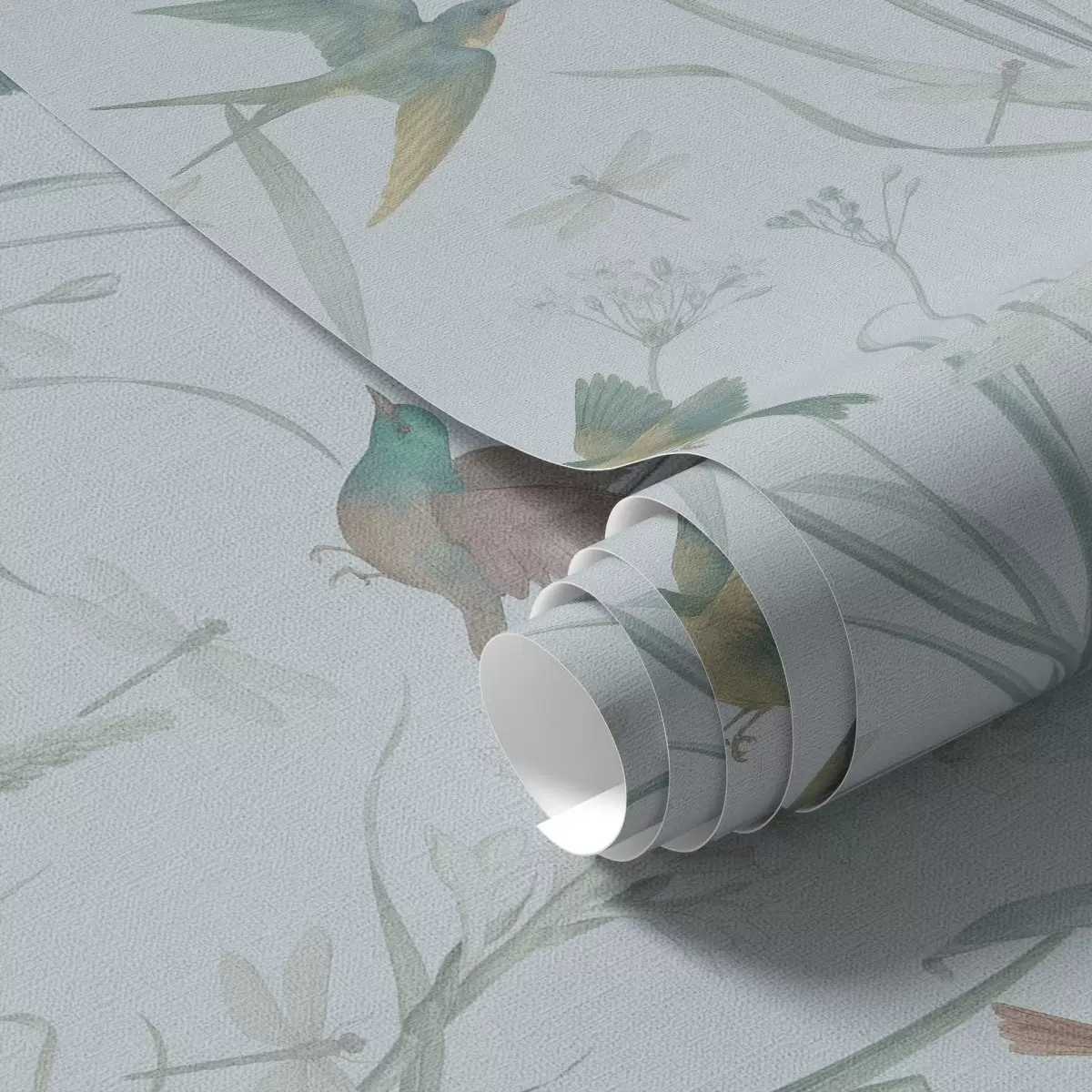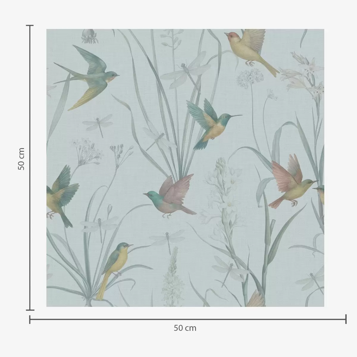 Tapetti Linnut niittyjen ruohojen keskellä harmaansinisellä maalla Nr. a00776