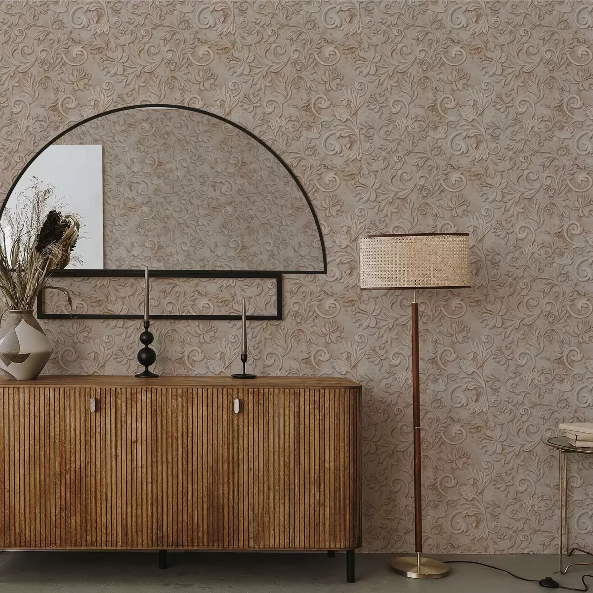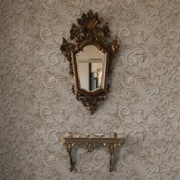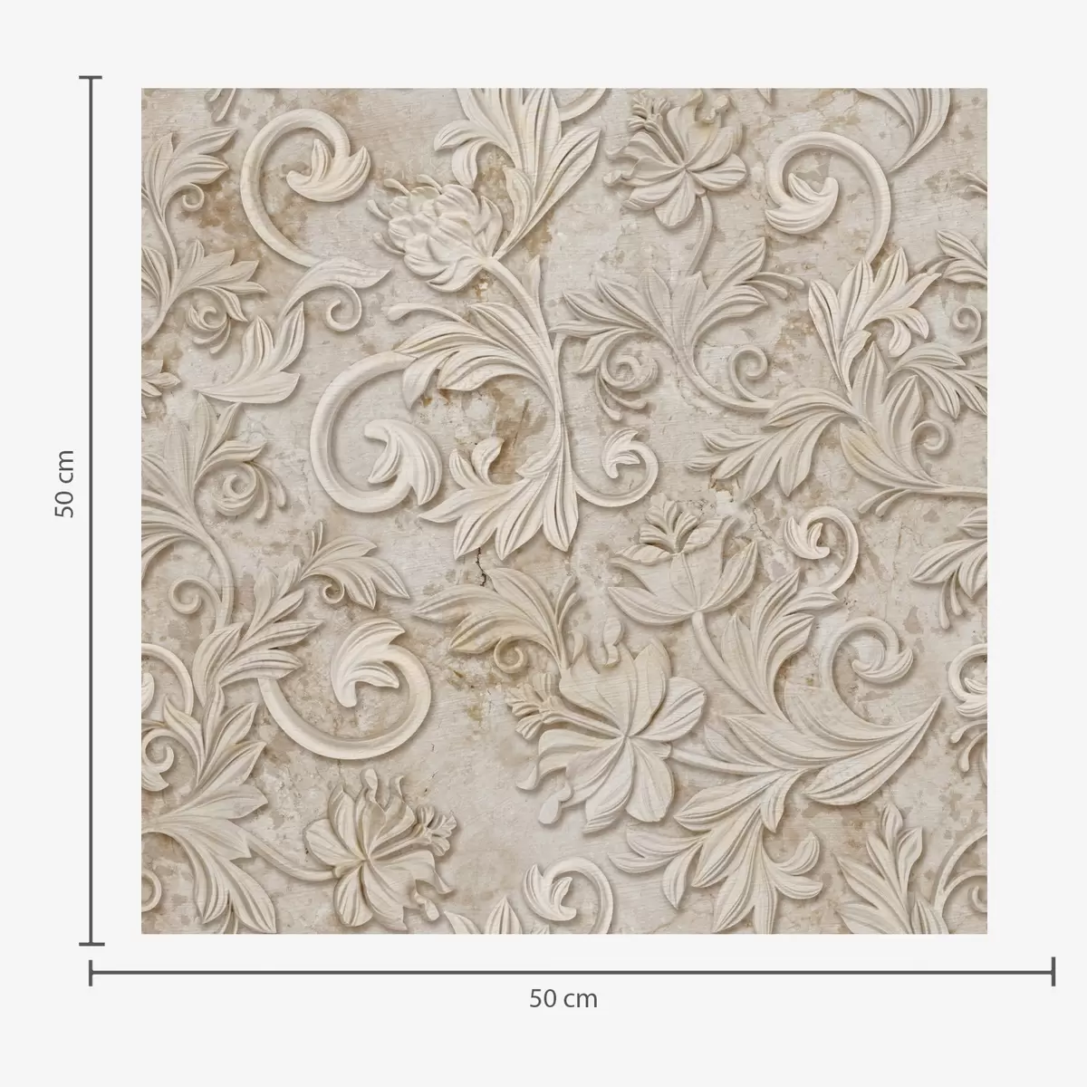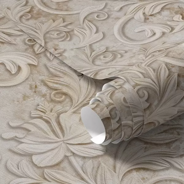 Tapetti Kivireliefi kukka-koristeilla, vintage-beige Nr. a00784