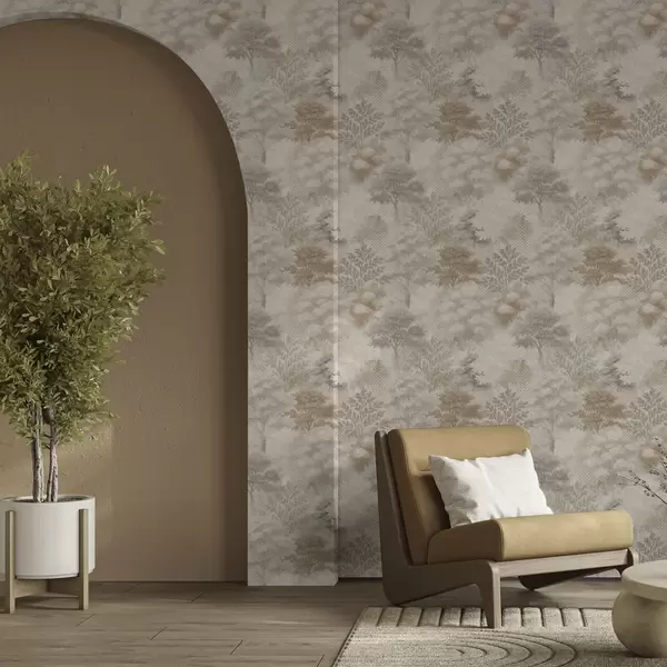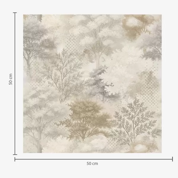 Tapetti Hellävarainen metsä sumussa, pehmeät beige-harmaat sävyt Nr. a00785