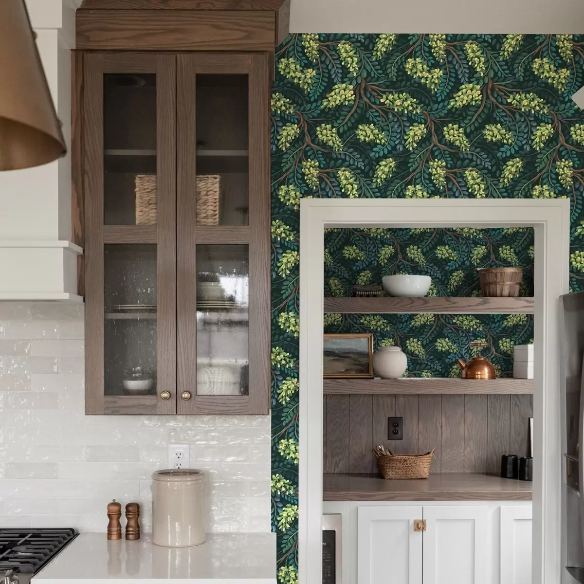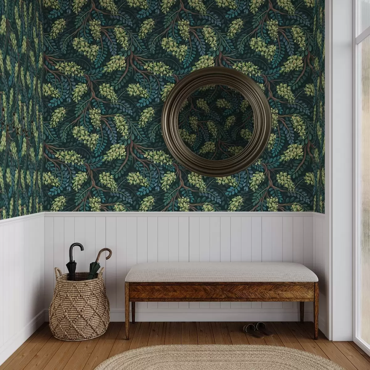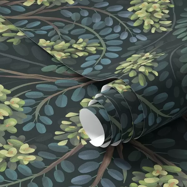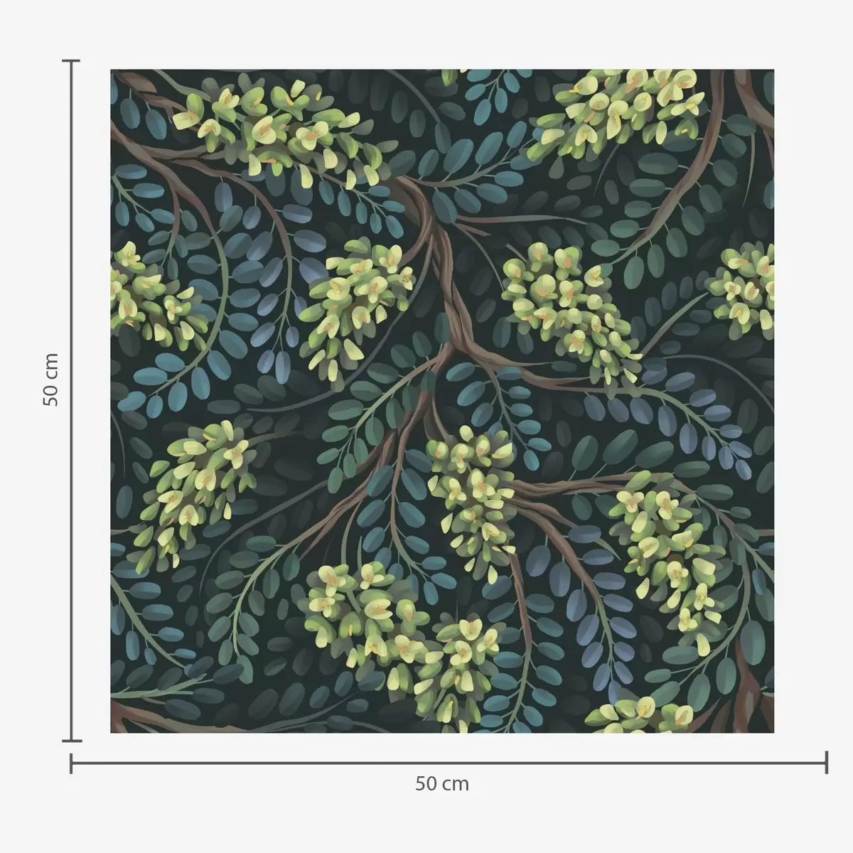 Tapetti Haarat, joissa on vihertävät kukinnot tummalla taustalla Nr. a00786
