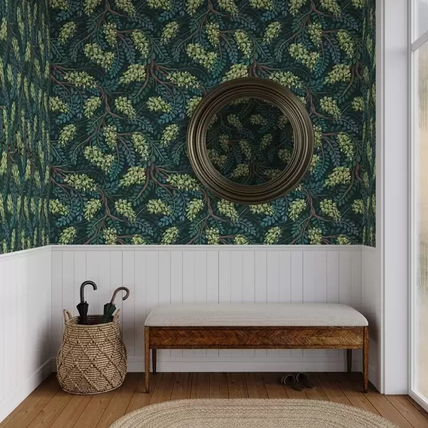 Tapetti Haarat, joissa on vihertävät kukinnot tummalla taustalla Nr. a00786