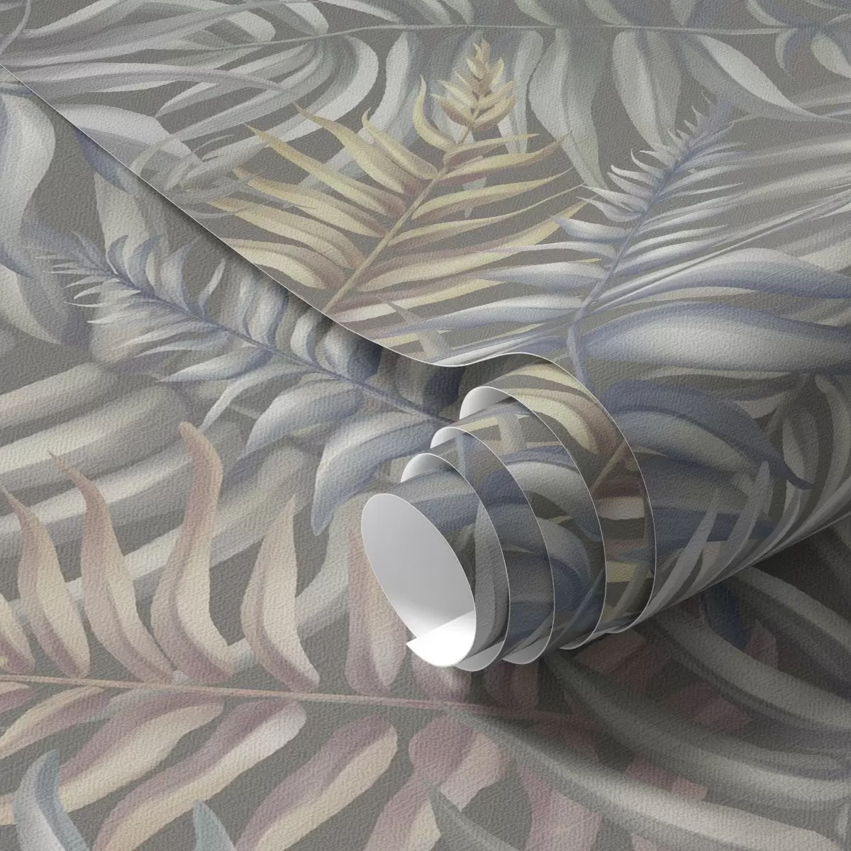 Tapetti Kerrostetut palmunlehdet hillityissä sävyissä Nr. a00789