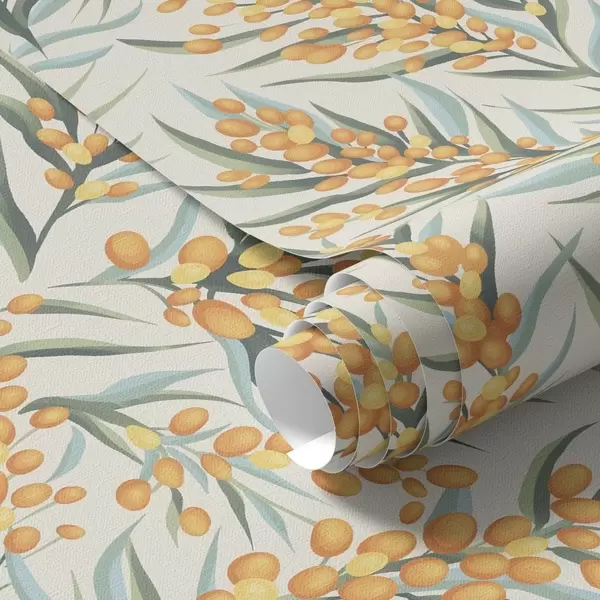 Tapetti Tyrmäysmarjan oksat oransseilla marjoilla, vaalea tausta Nr. a00792