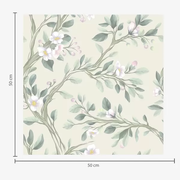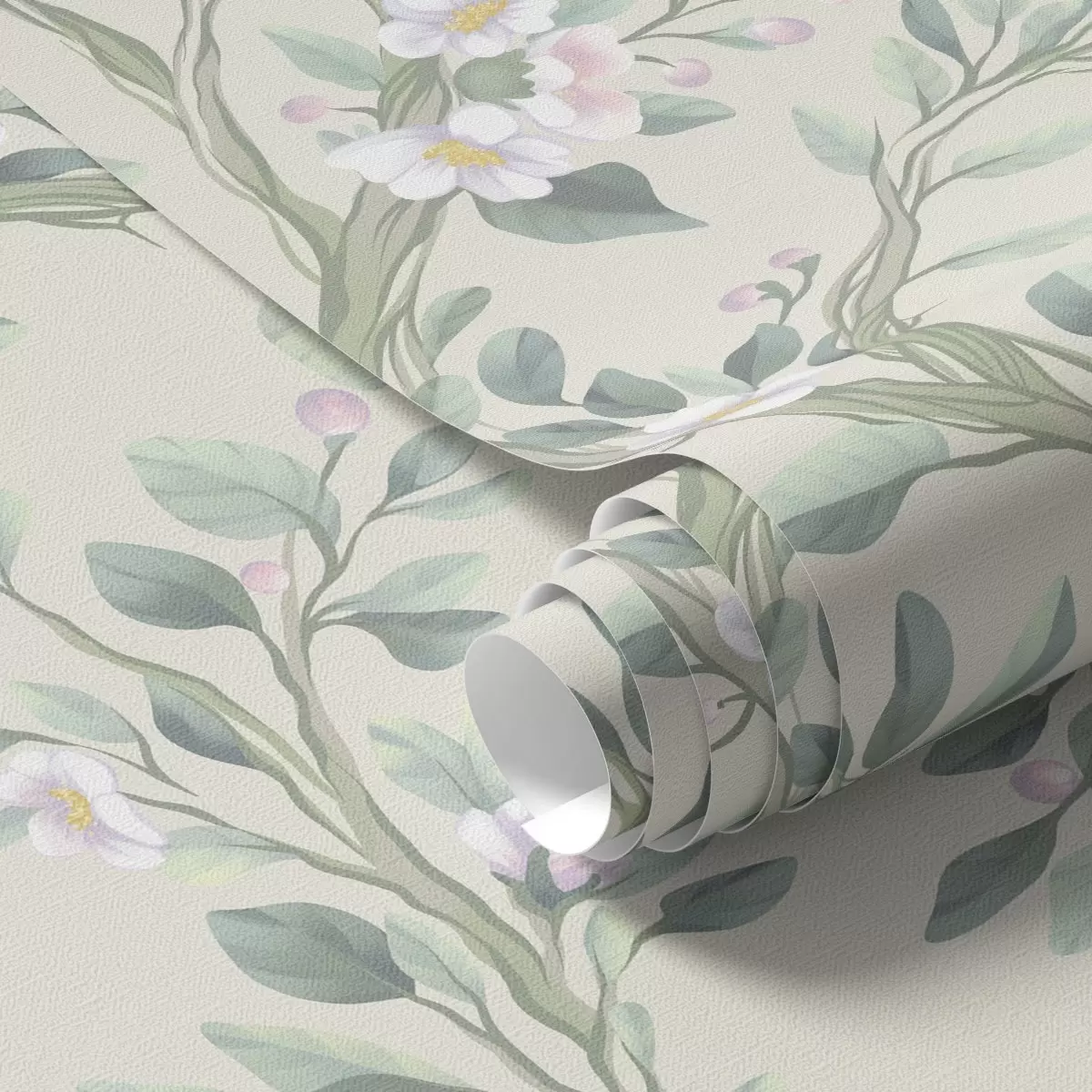 Tapetti Hienostuneet kukkivat oksat kermanvärisellä taustalla, pastellivärit Nr. a00793