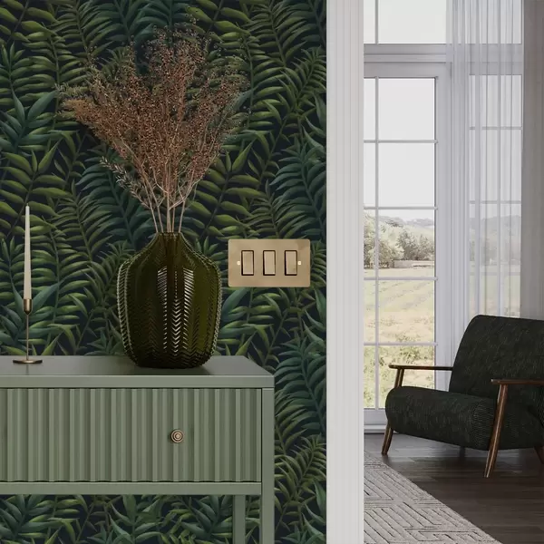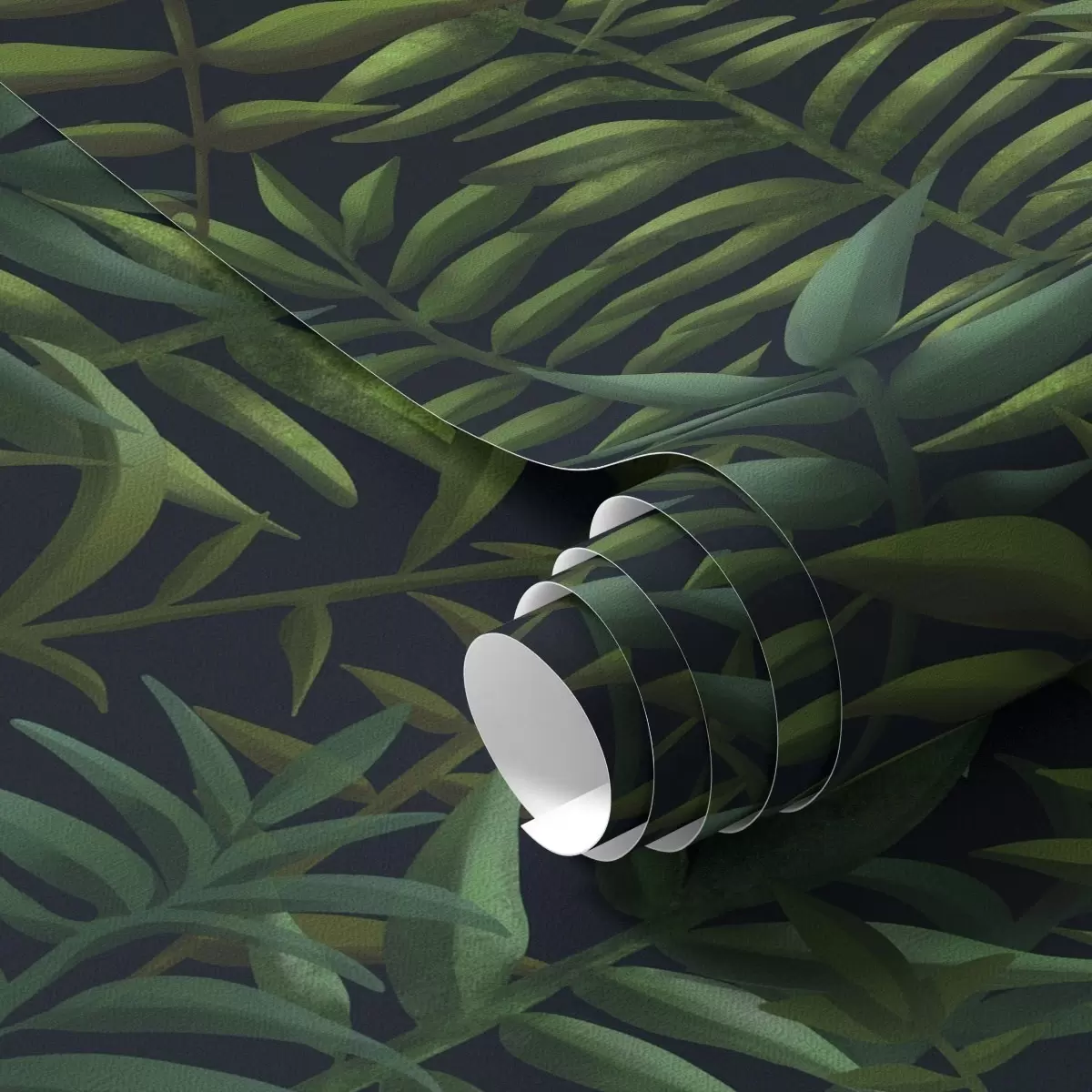 Tapetti Tummat trooppiset lehdet tummalla taustalla Nr. a00794