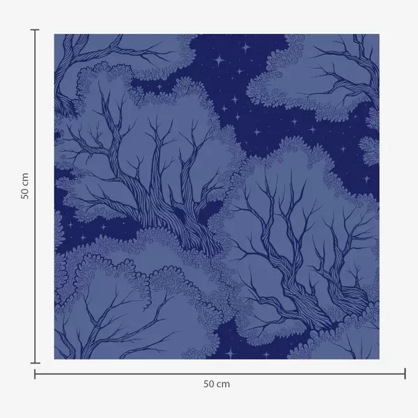 Tapetti Sinisen sävyiset puiden siluetit tähtitaivaan alla Nr. a00798