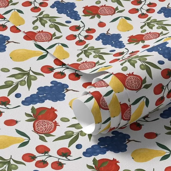 Tapetti Mehukkaat hedelmät: granaattiomenat, viinirypäleet, päärynät valkoisella taustalla Nr. a00801