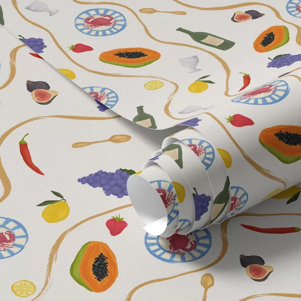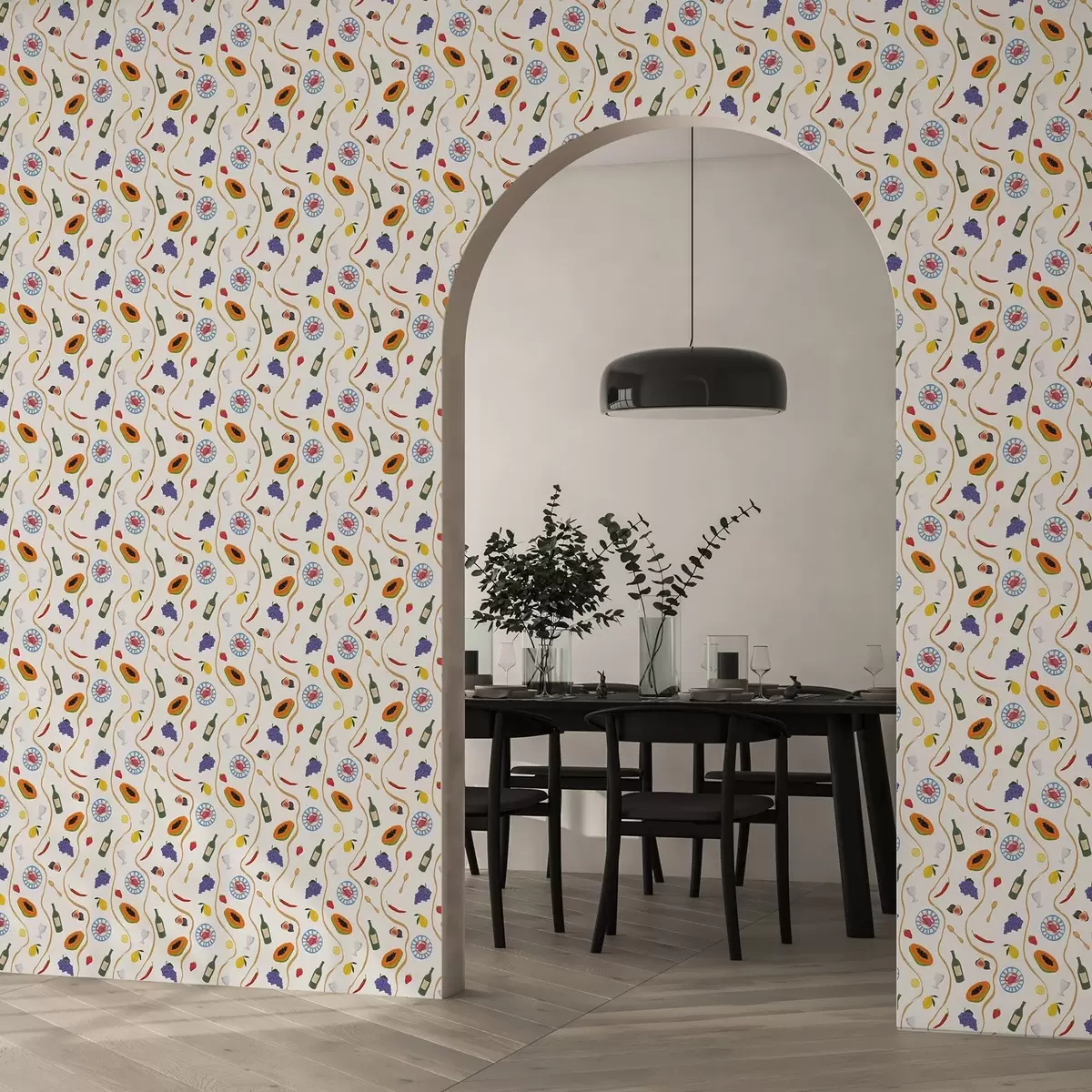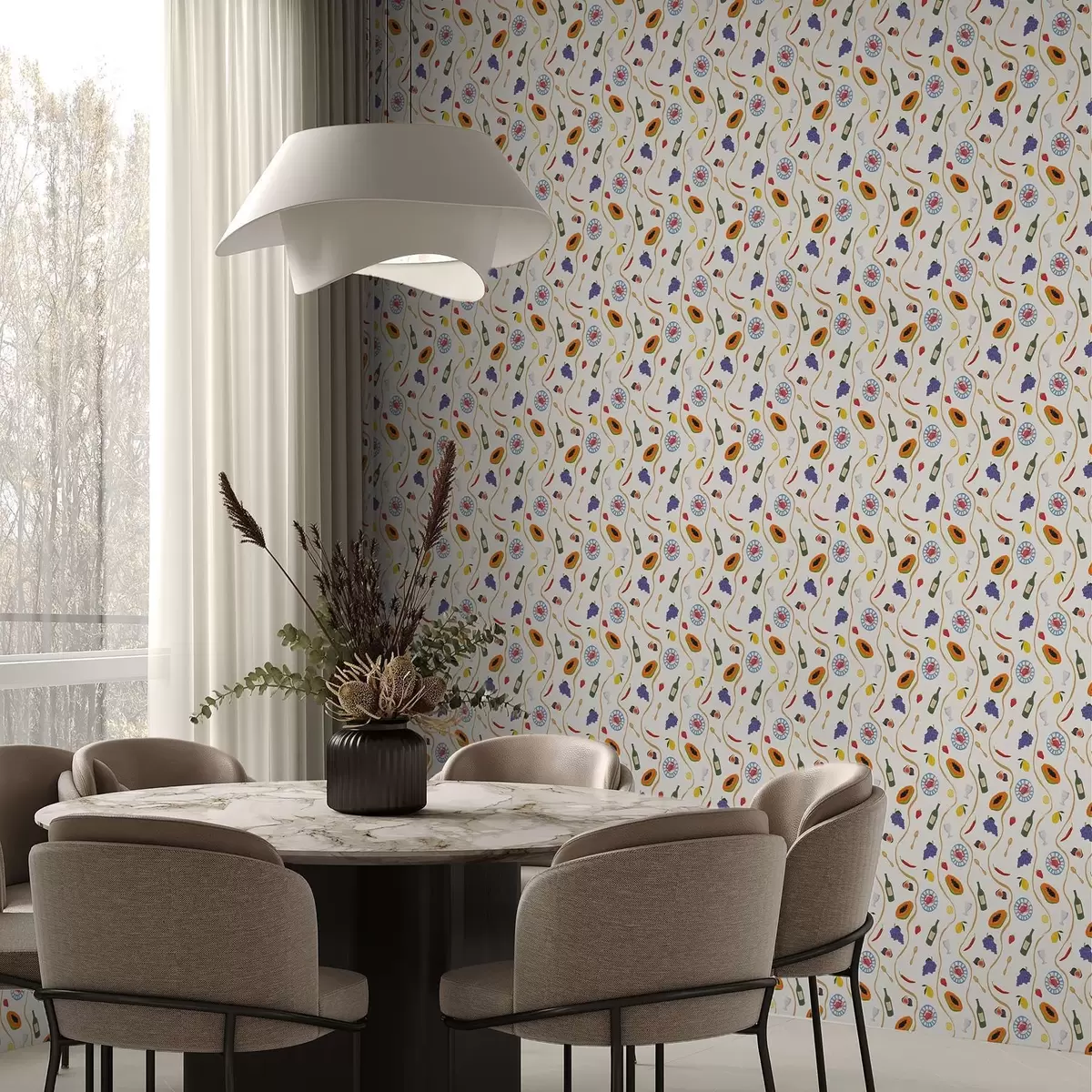 Tapetti Pullot, papaija, sitruunat ja mausteet vaalealla taustalla Nr. a00802