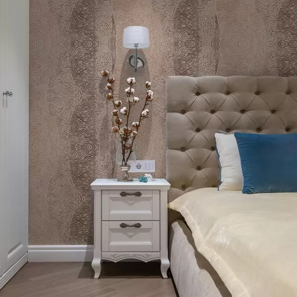 Tapetti Aaltoileva geometrinen kuvio vaalean beige-ruskeassa värimaailmassa Nr. a00804