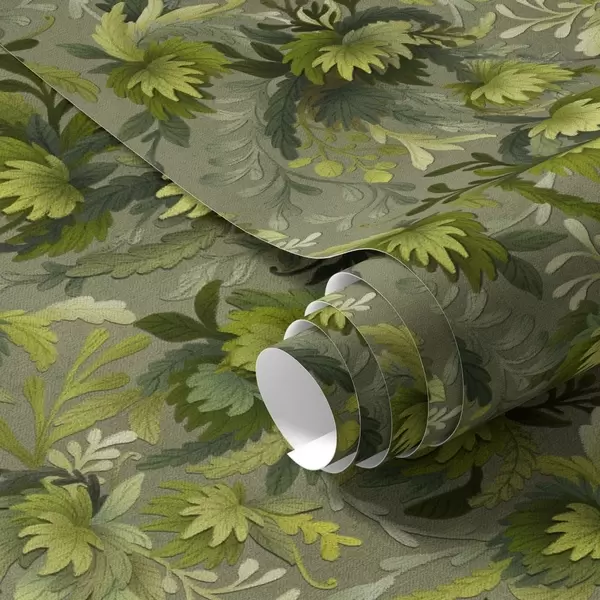 Tapetti Tiheä vihreä lehtien peitto harmaavihreällä taustalla Nr. a00805v1
