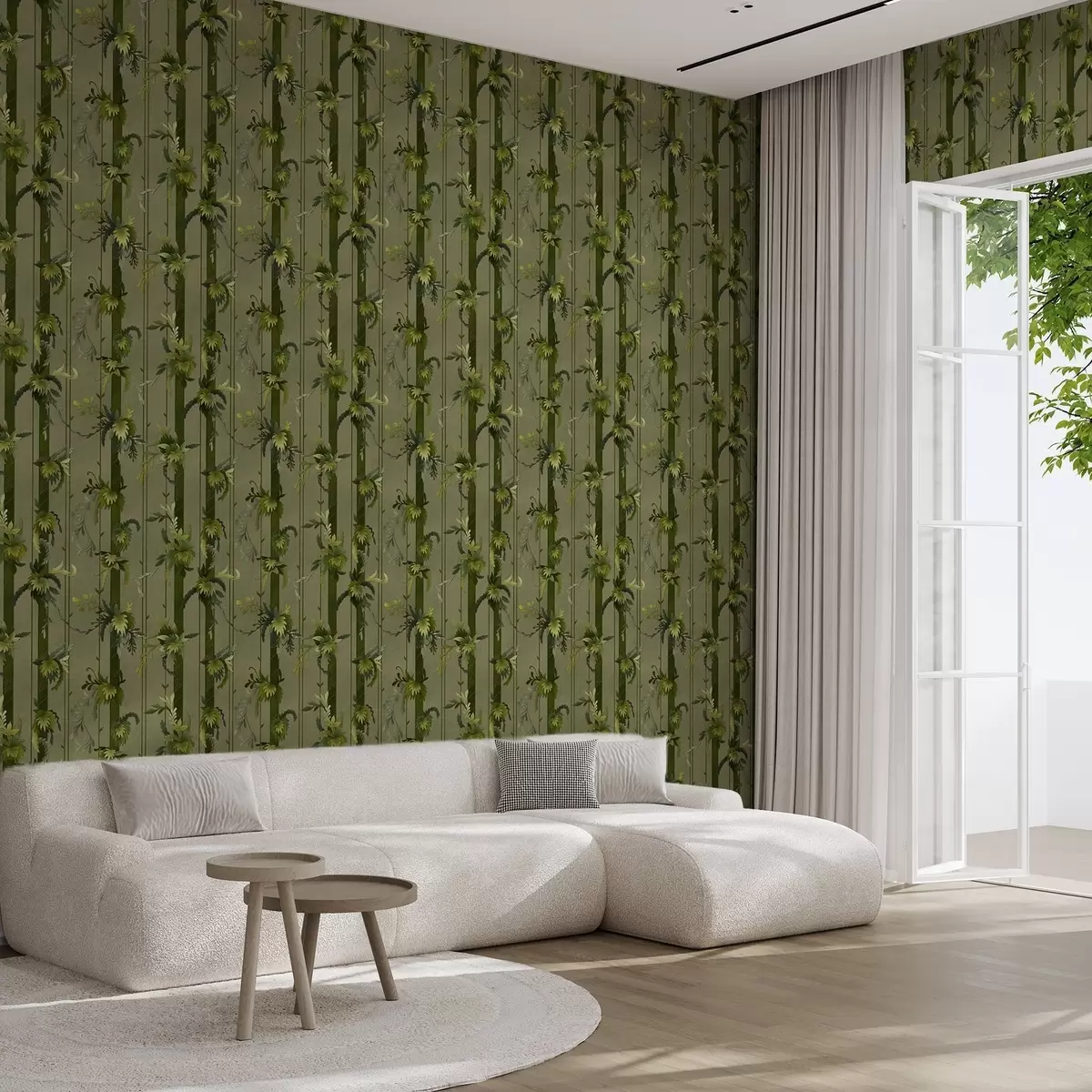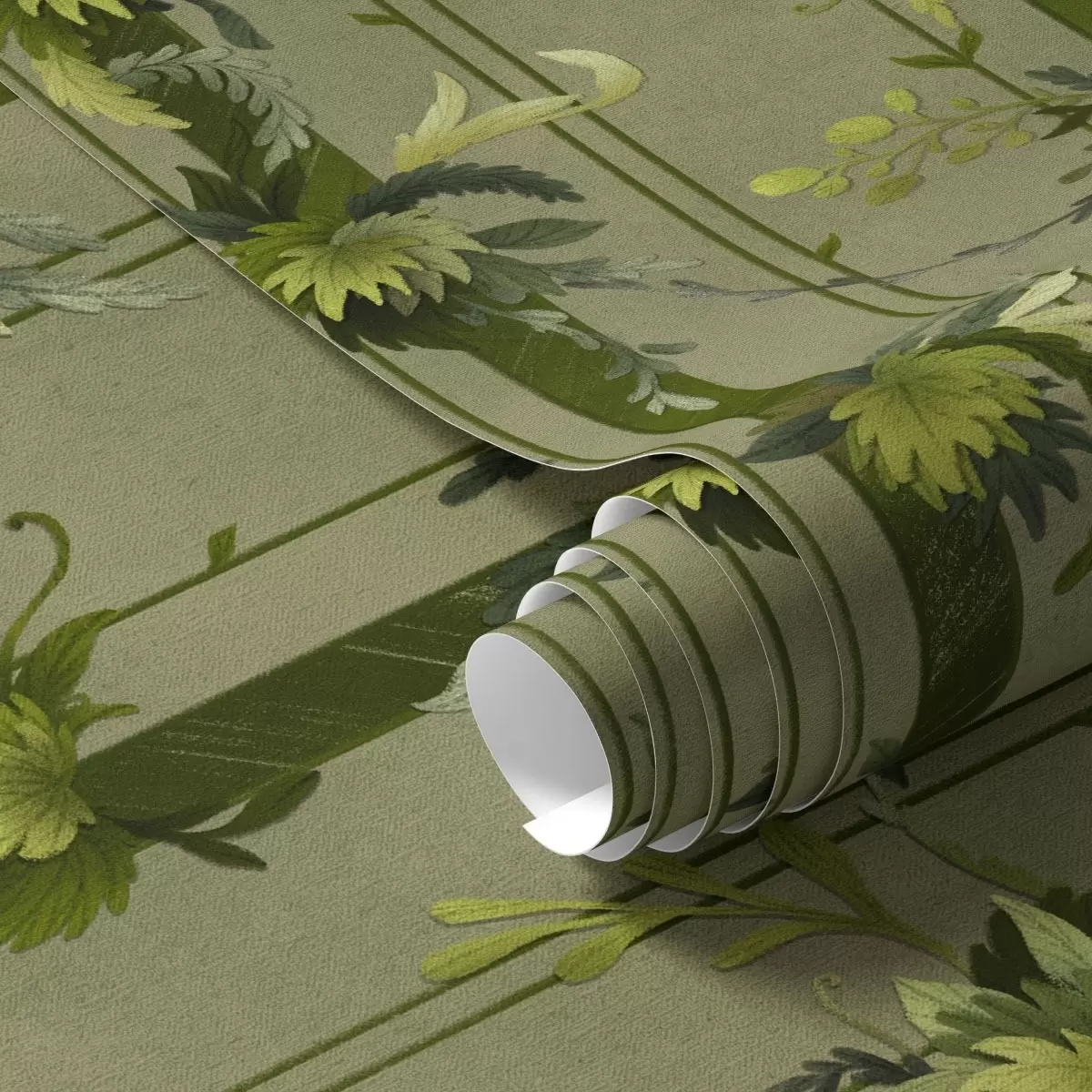 Tapetti Viiniköynnöksen lehdet ja rypäleterttuja vaaleanvihreissä vesiväri sävyissä Nr. a00807