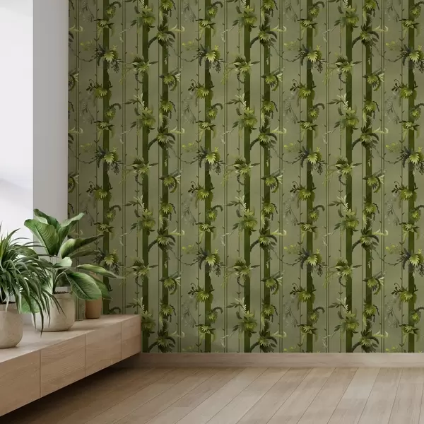 Tapetti Viiniköynnöksen lehdet ja rypäleterttuja vaaleanvihreissä vesiväri sävyissä Nr. a00807