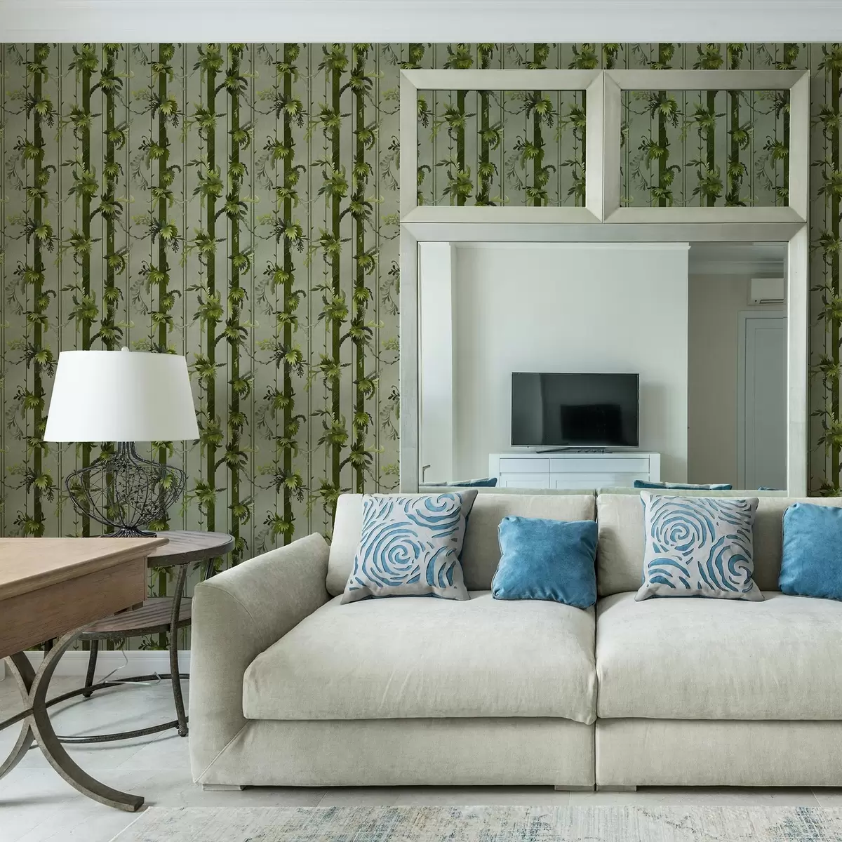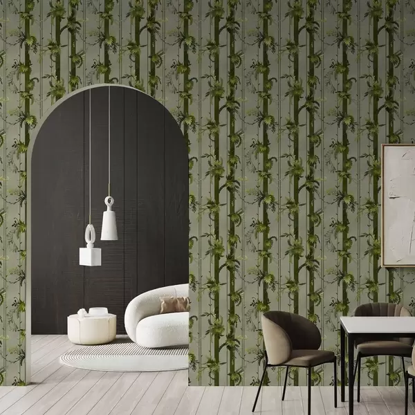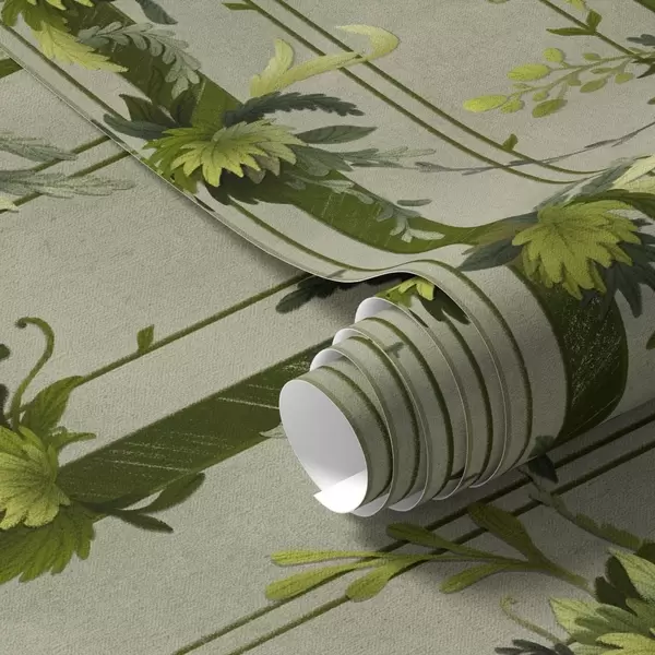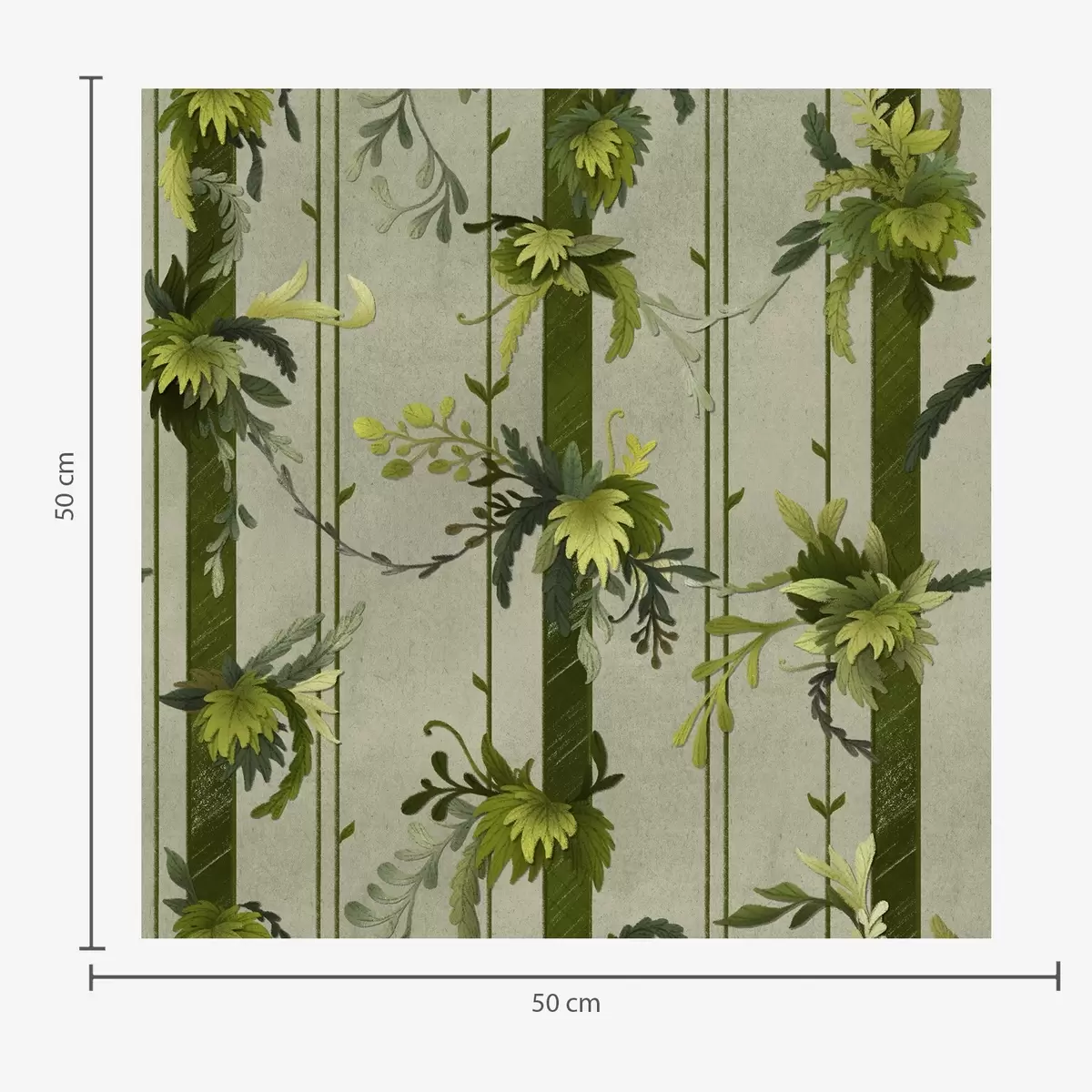 Tapetti Vihreät lehdet pystysuorina raidoina harmaalla taustalla Nr. a00807v1