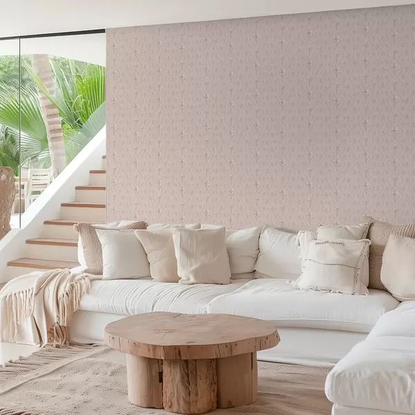 Tapetti Pienet kukat ja nauhat pehmeissä vaaleanpunaisissa ja beigeissä sävyissä Nr. a00808