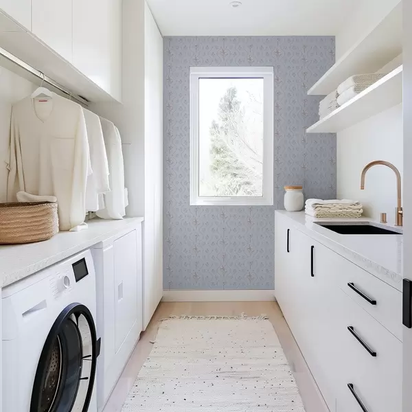 Tapetti Pienet kukat ja nauhat vaaleansinisissä sävyissä Nr. a00808v1
