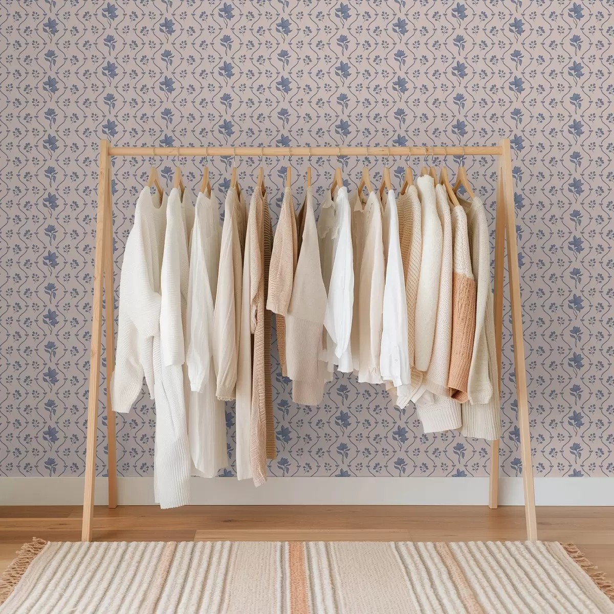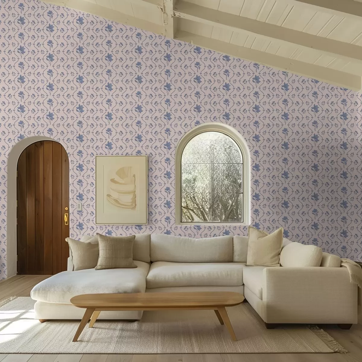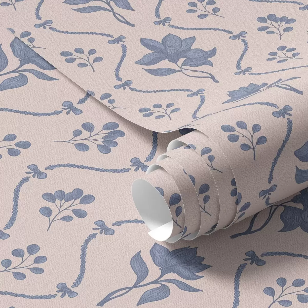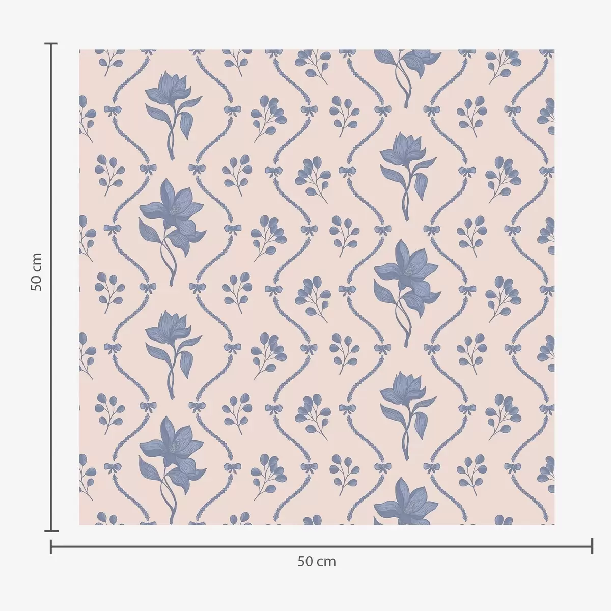 Tapetti Pienet kukat ja nauhat sinisen ja vaaleanpunaisen sävyissä Nr. a00808v3