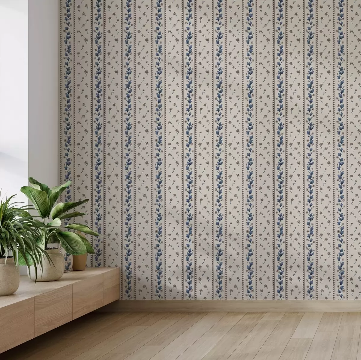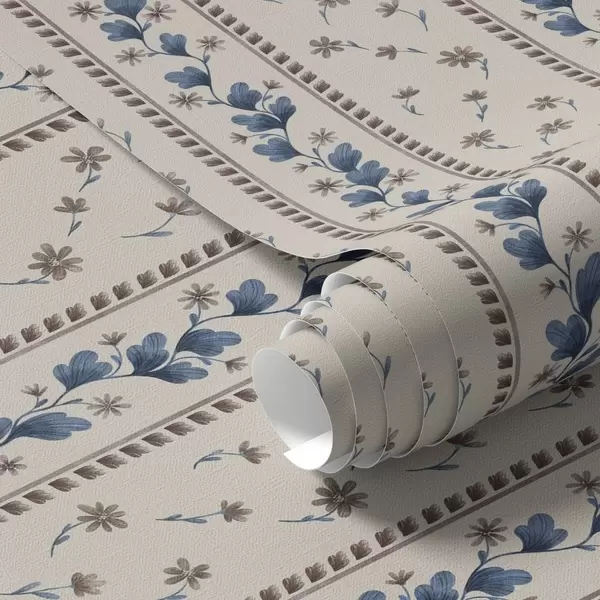 Tapetti Vertikaaliset kukka-raidat sinisen ja ruskean sävyissä Nr. a00811v3