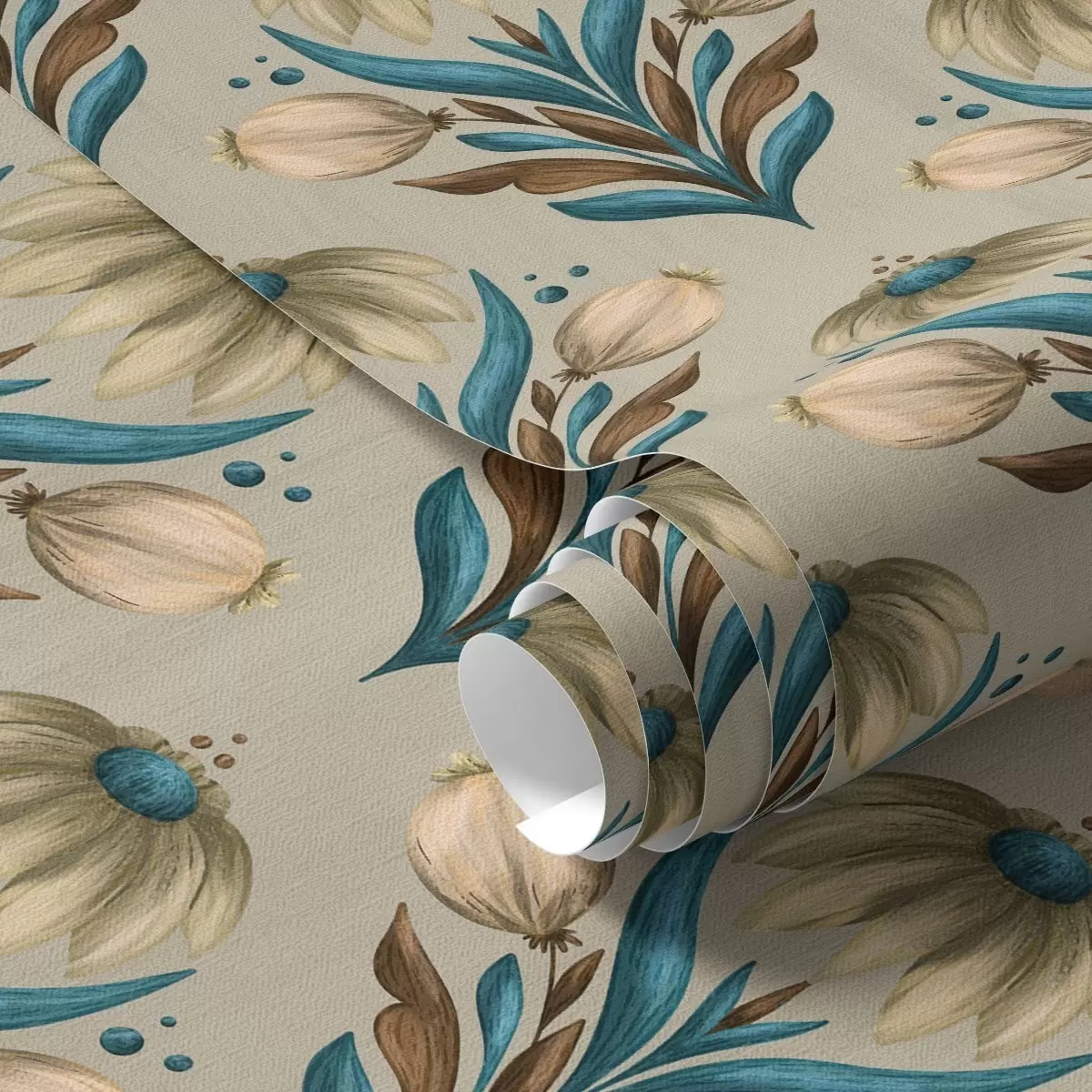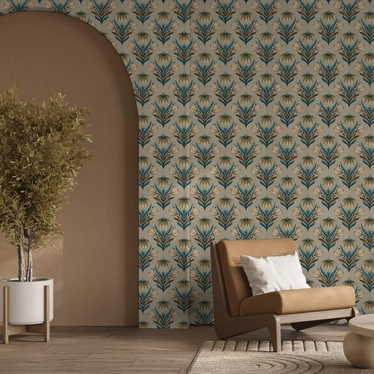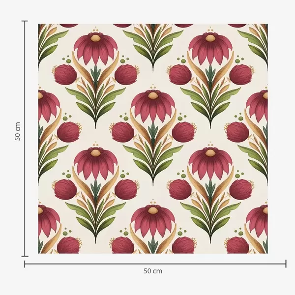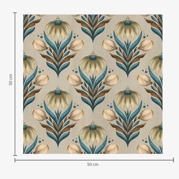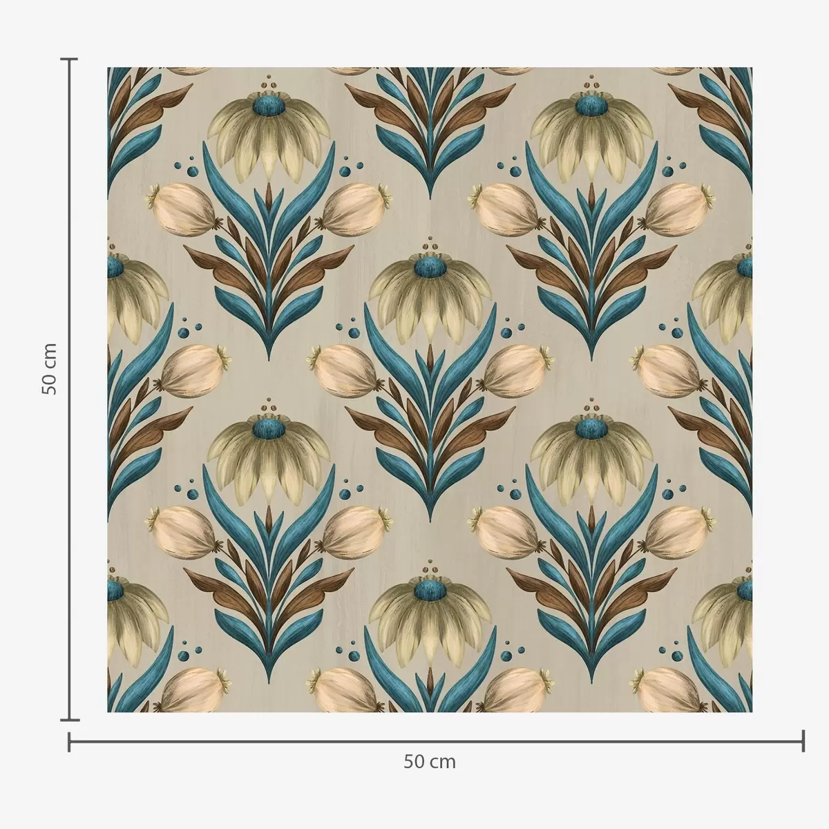 Tapetti Symmetrinen kukka-koriste lämpimissä sävyissä Nr. a00812