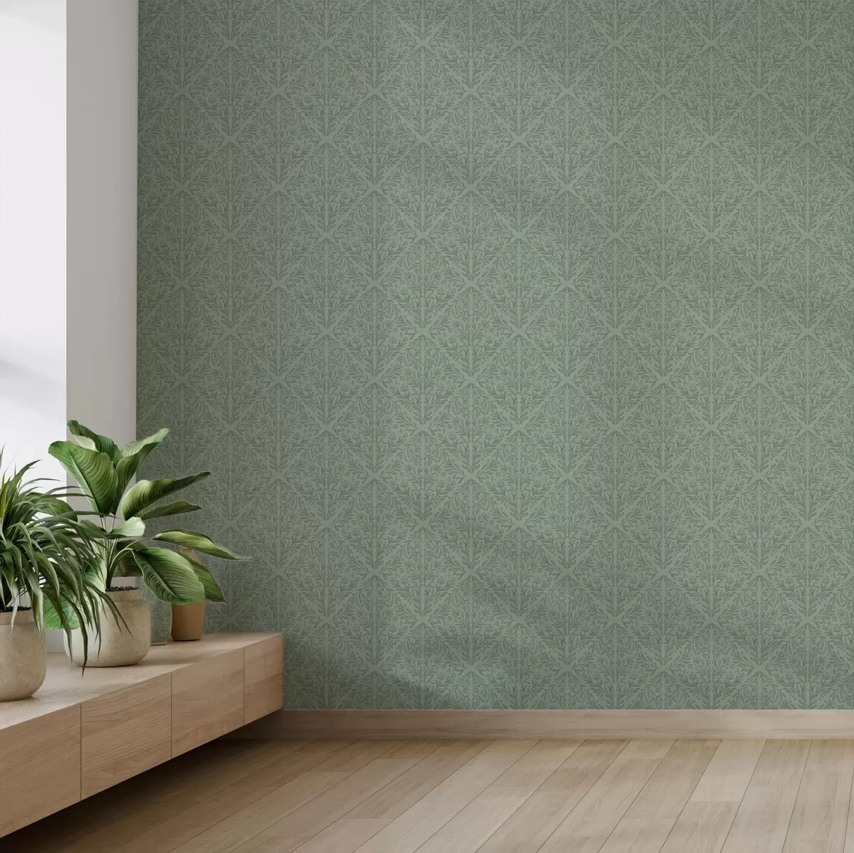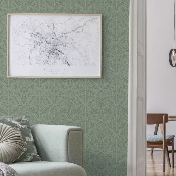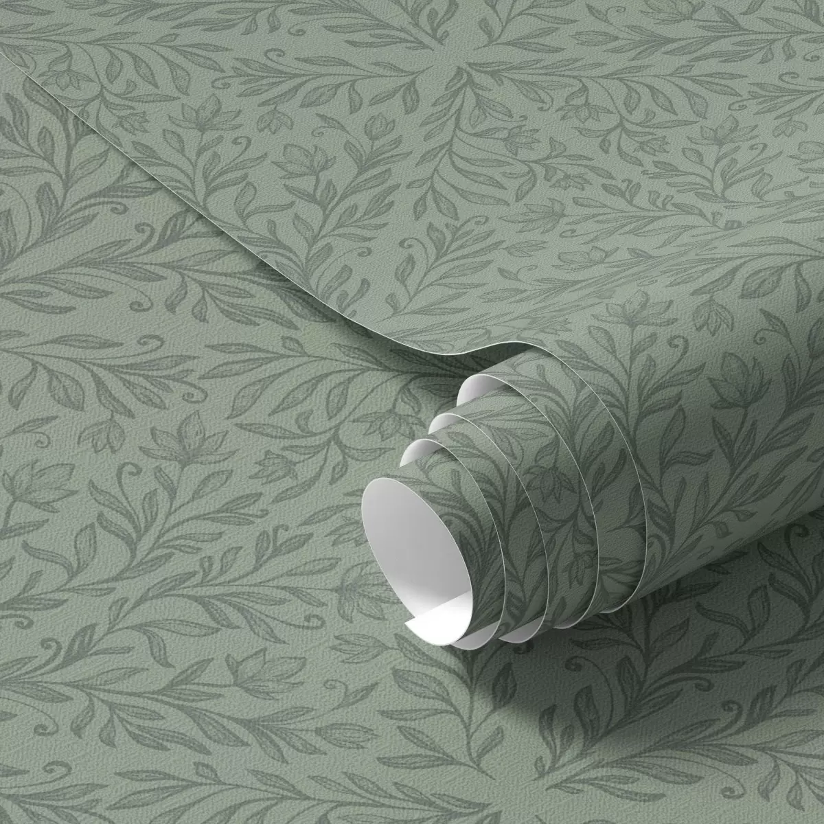 Tapetti Hieno kasvitieteellinen damasti hillityn vihreänä Nr. a00815v1